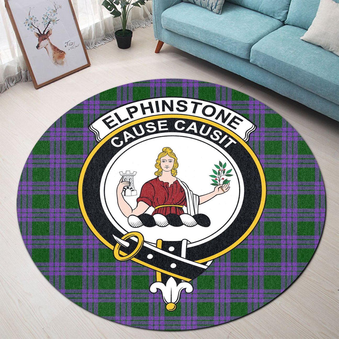 Elphinstone Tartan Crest Round Rug