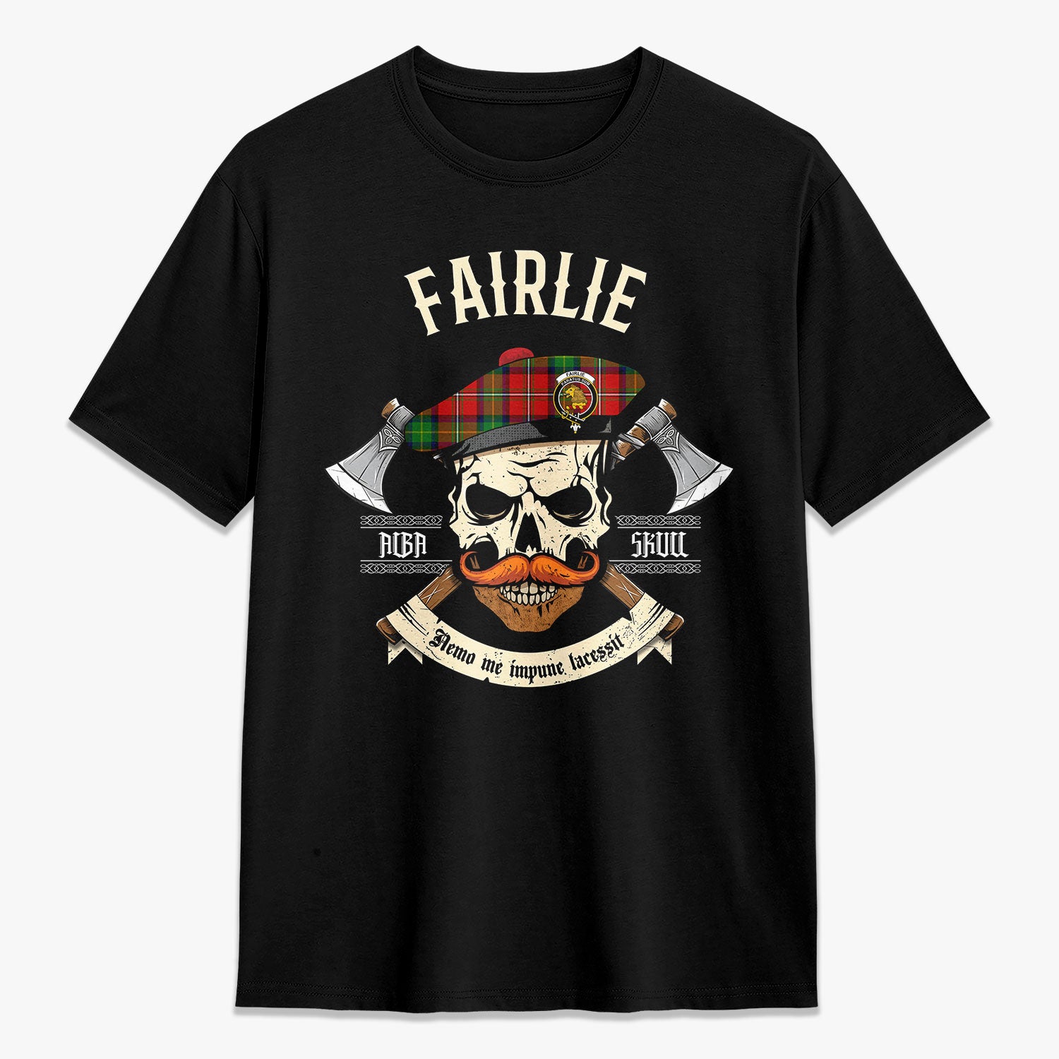 Fairlie Tartan Crest 2D T-shirt - Alba Skull Style,