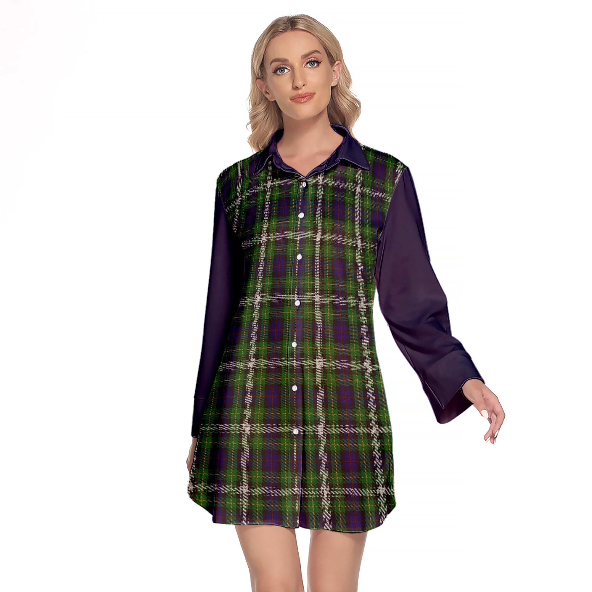 Farquharson Dress Tartan Women's Lapel Shirt Dress With Long Sleeve