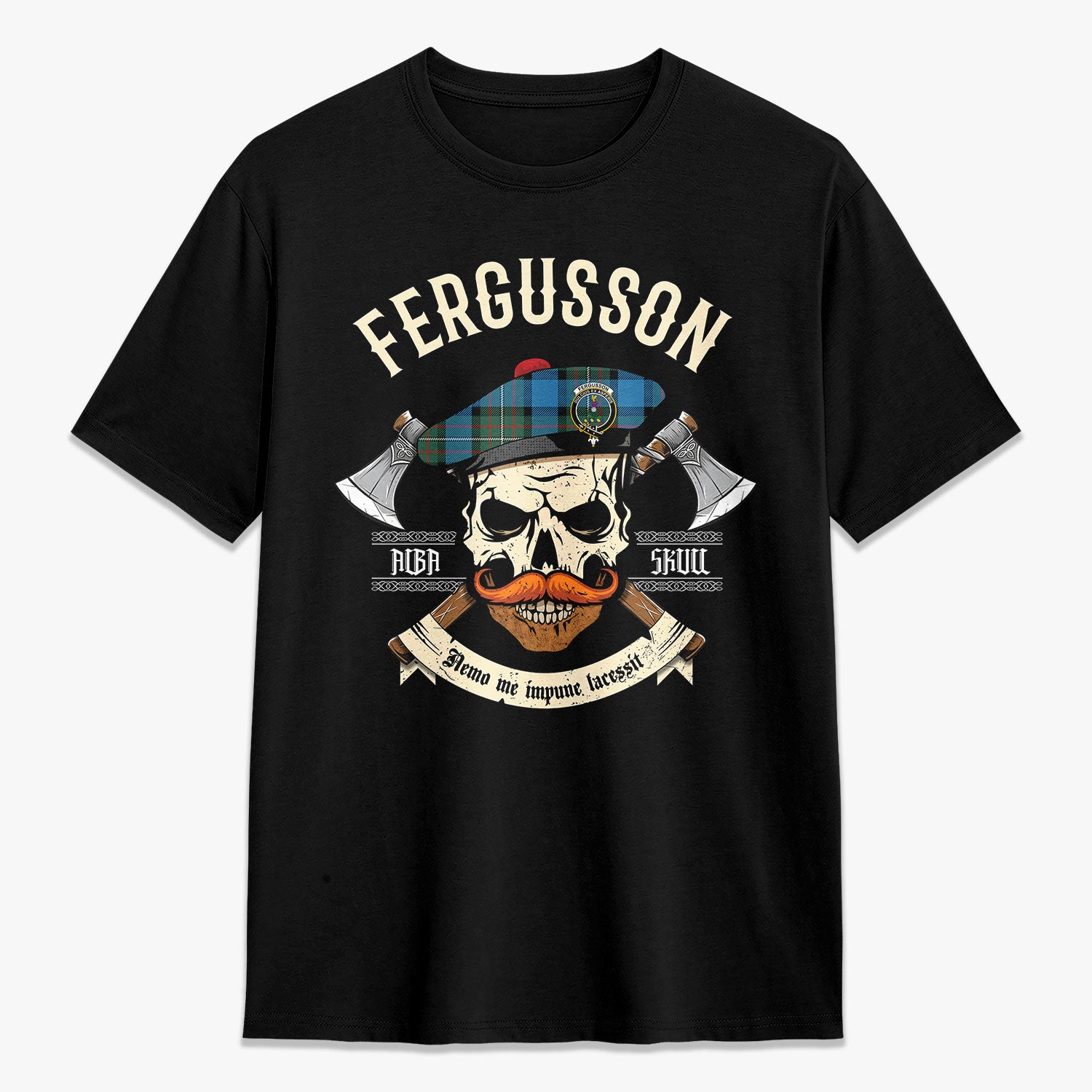 Fergusson Ancient Tartan Crest 2D T-shirt - Alba Skull Style,