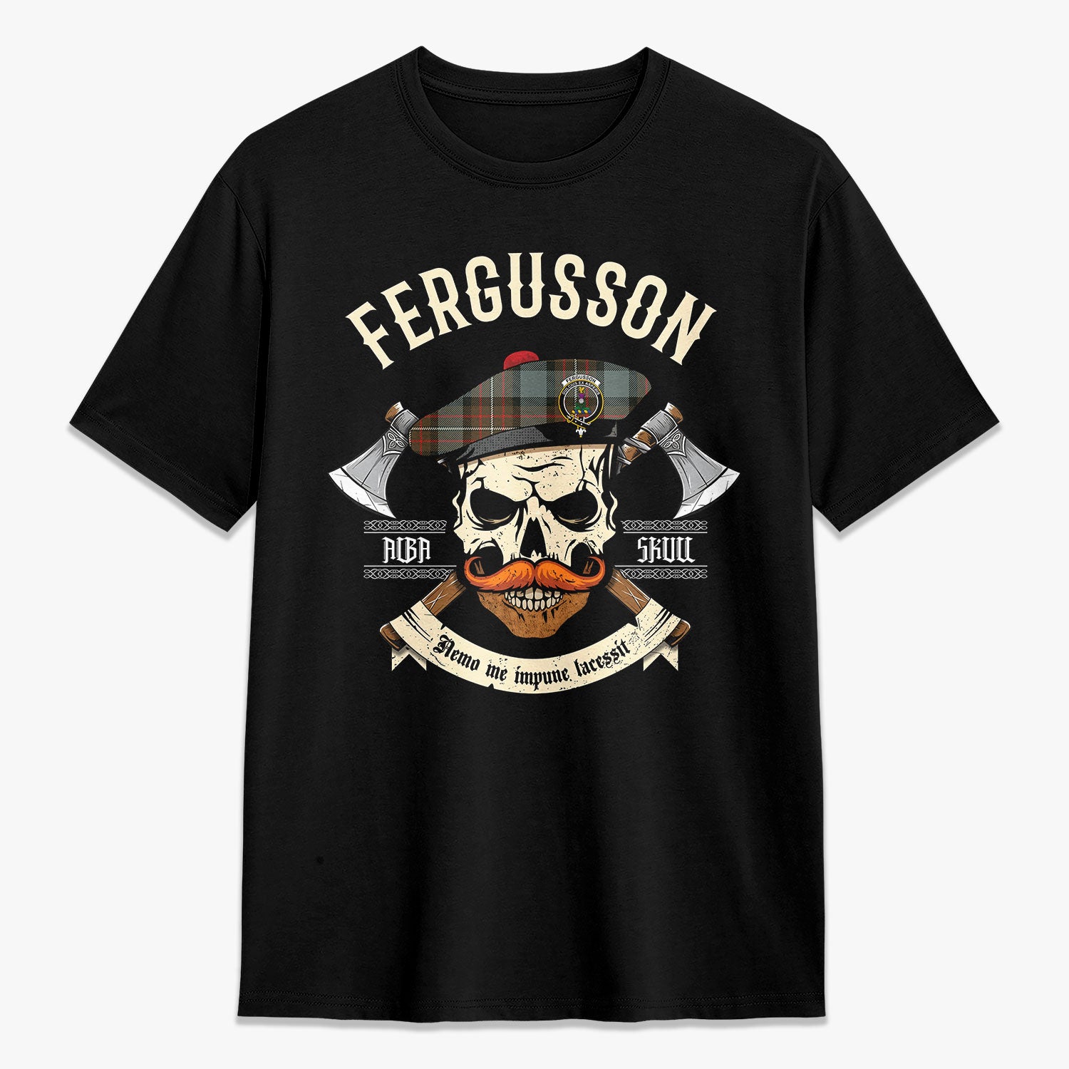 Fergusson Weathered Tartan Crest 2D T-shirt - Alba Skull Style,