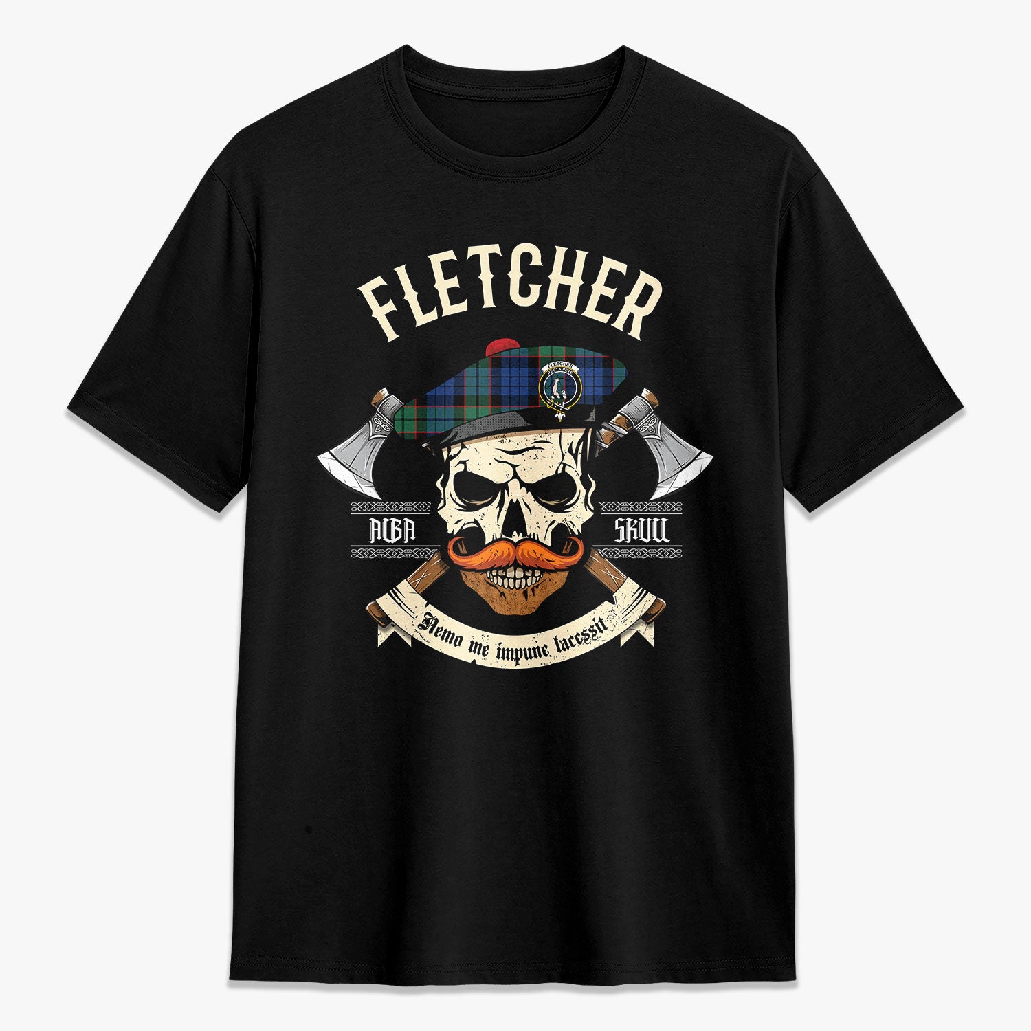 Fletcher Ancient Tartan Crest 2D T-shirt - Alba Skull Style,