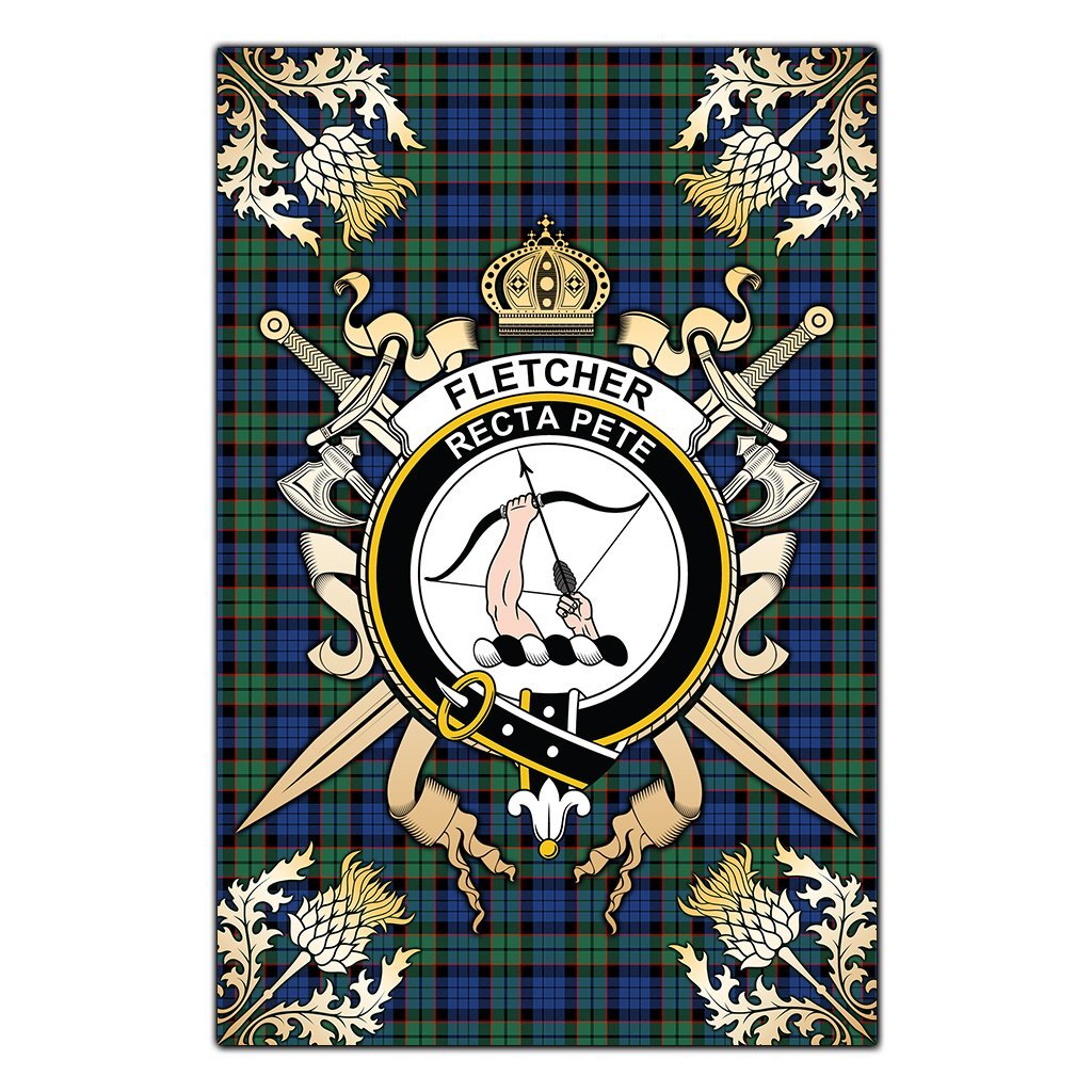 Fletcher Ancient Tartan Crest Black Garden Flag - Gold Thistle Style