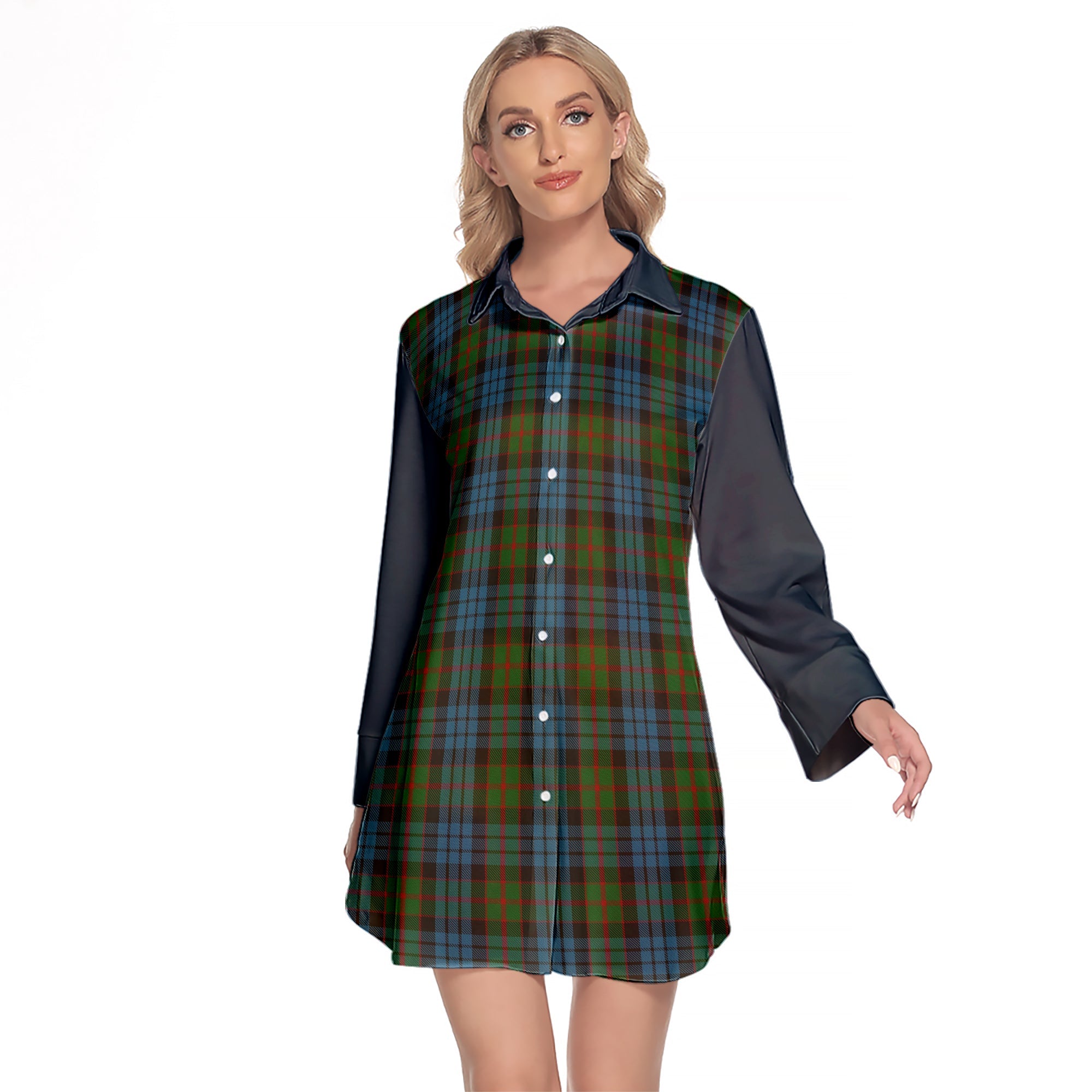 Fletcher Of Dunans Tartan Women's Lapel Shirt Dress With Long Sleeve