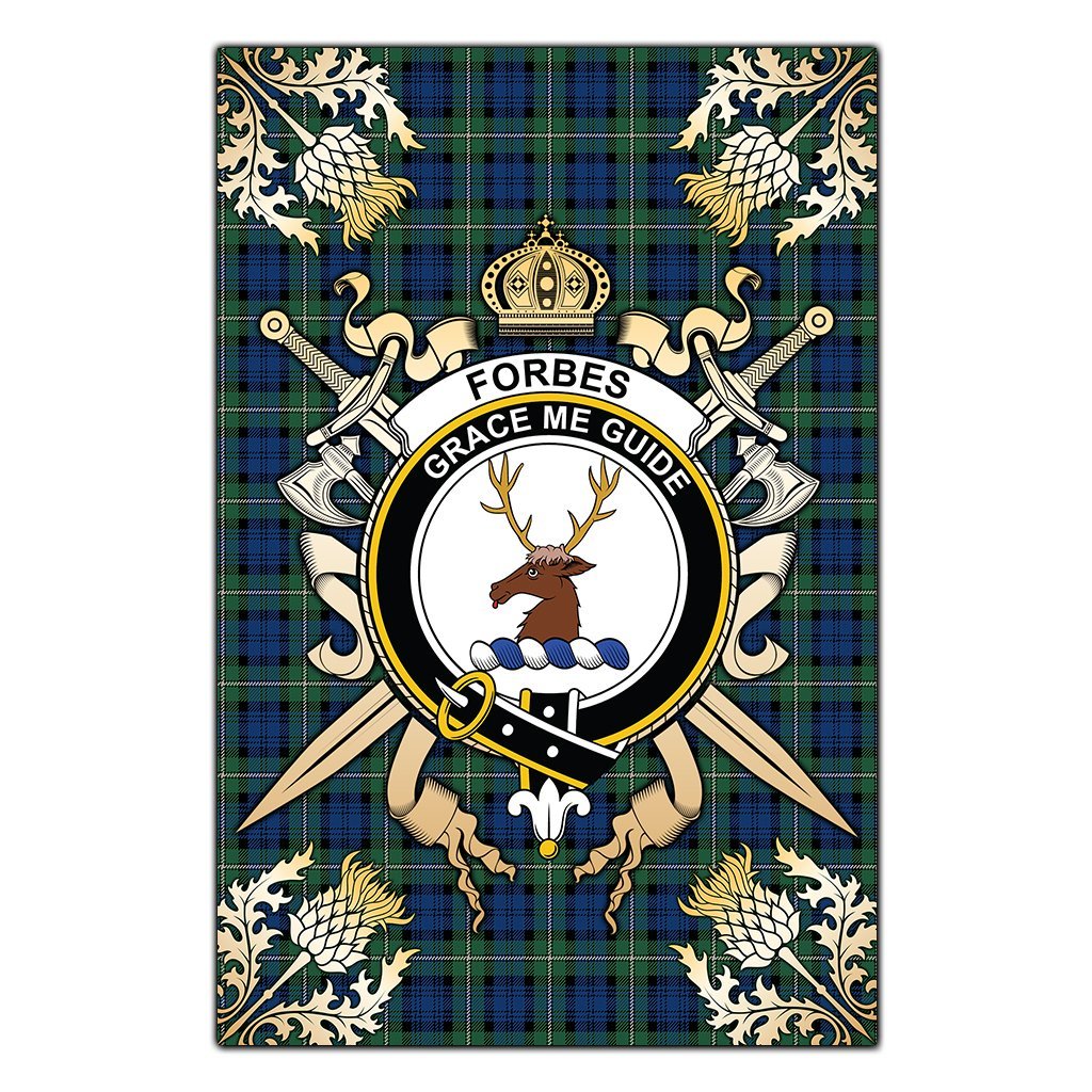 Forbes Ancient Tartan Crest Black Garden Flag - Gold Thistle Style