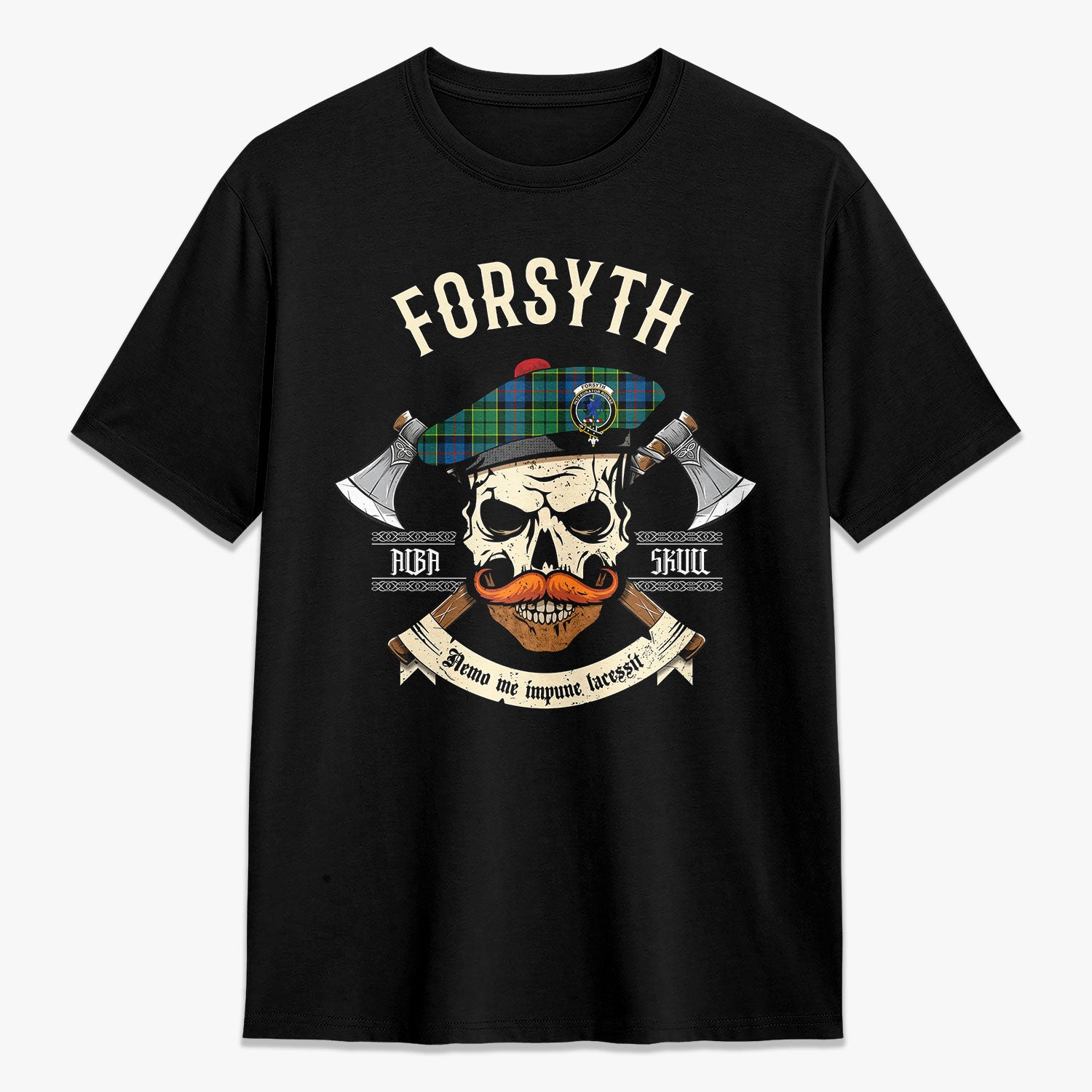 Forsyth Ancient Tartan Crest 2D T-shirt - Alba Skull Style,