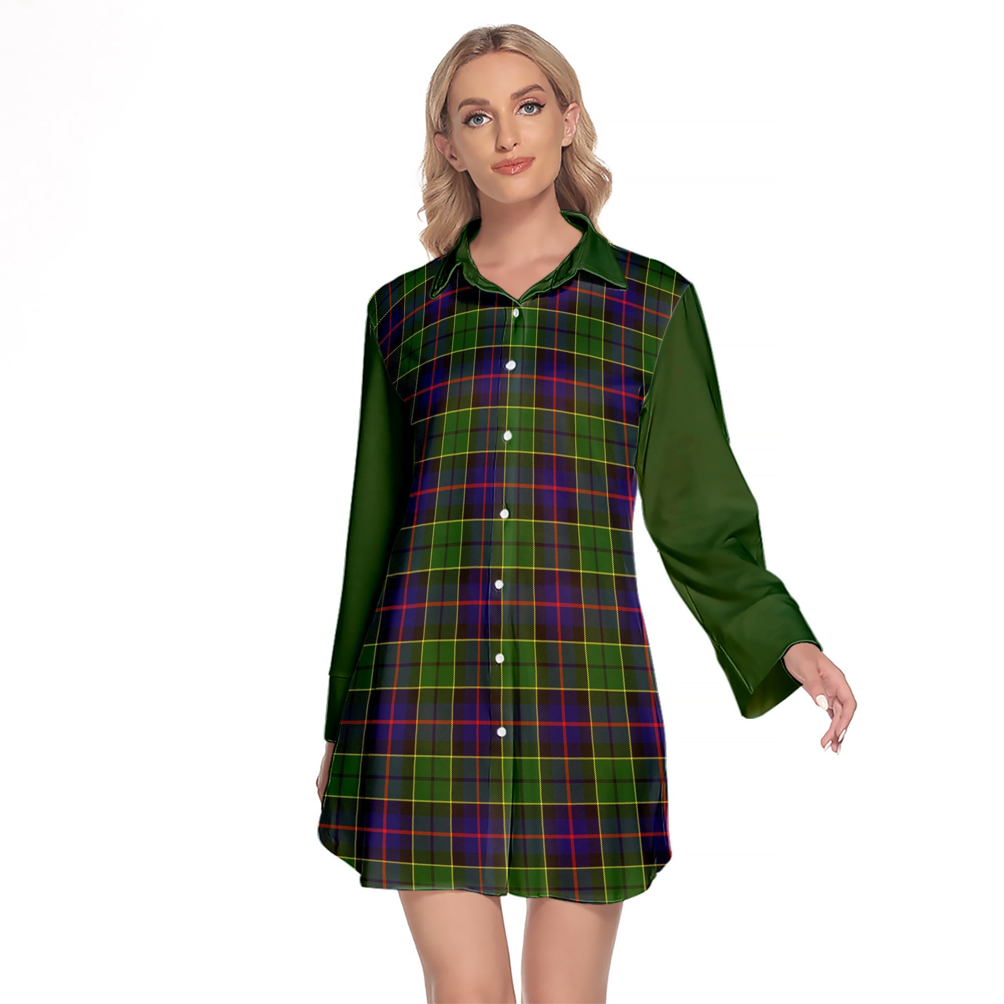 Forsyth Modern Tartan Women's Lapel Shirt Dress With Long Sleeve