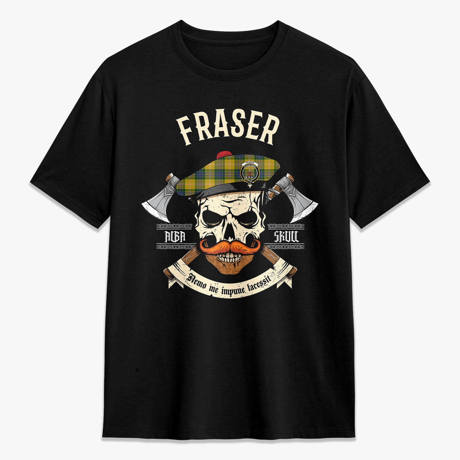 Fraser (of Lovat) Yellow Tartan Crest 2D T-shirt - Alba Skull Style,