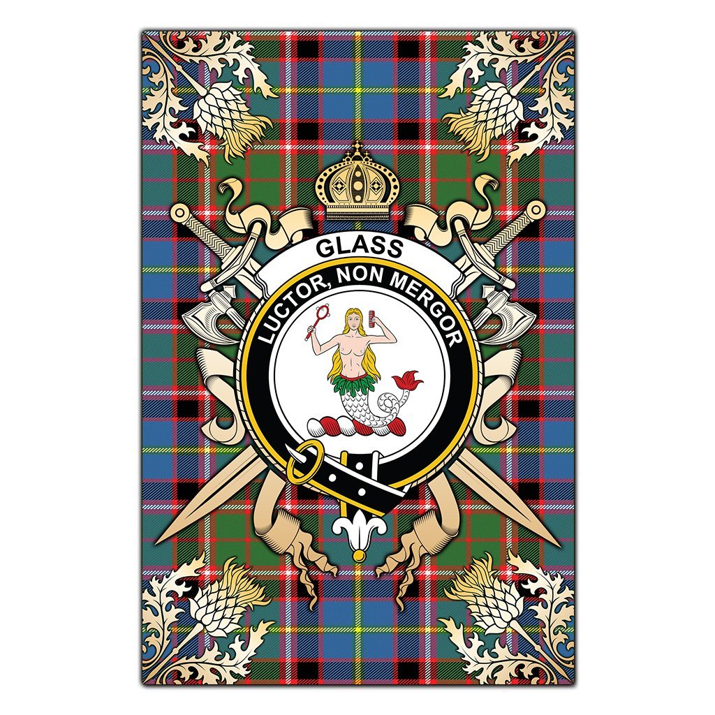 Glass Tartan Crest Black Garden Flag - Gold Thistle Style