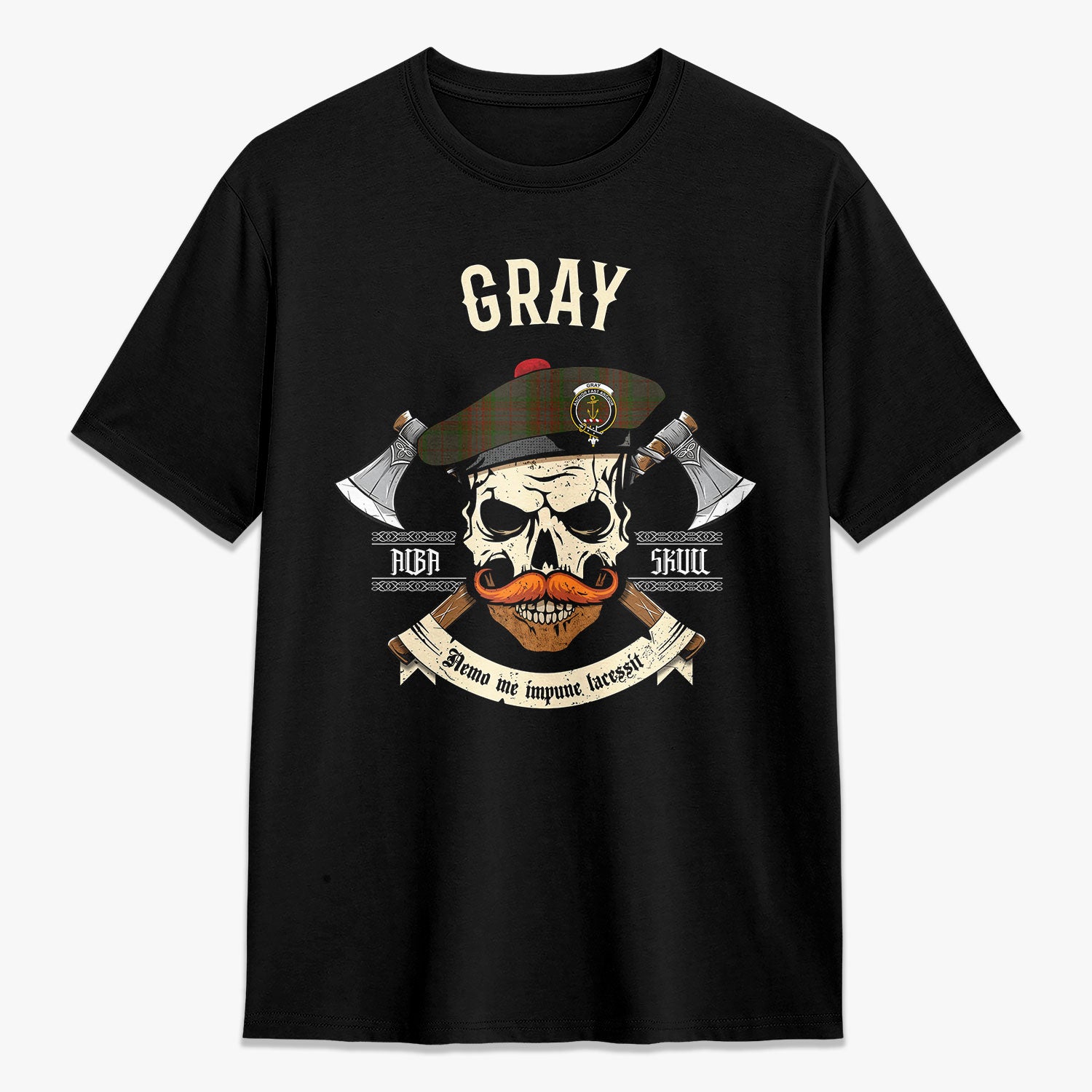 Gray Tartan Crest 2D T-shirt - Alba Skull Style