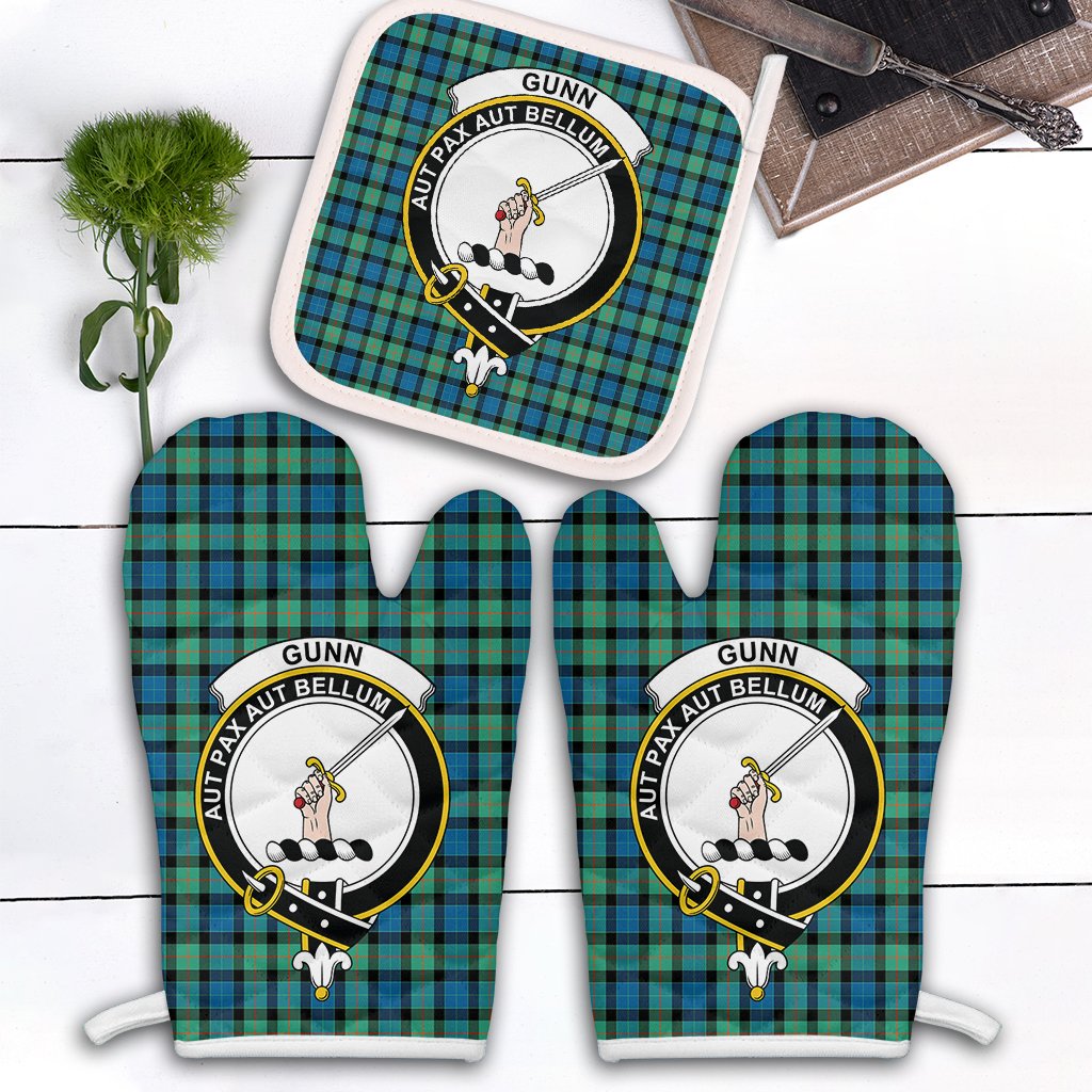 Gunn Ancient Tartan Crest Oven Mitt And Pot Holder (2 Oven Mitts + 1 Pot Holder)