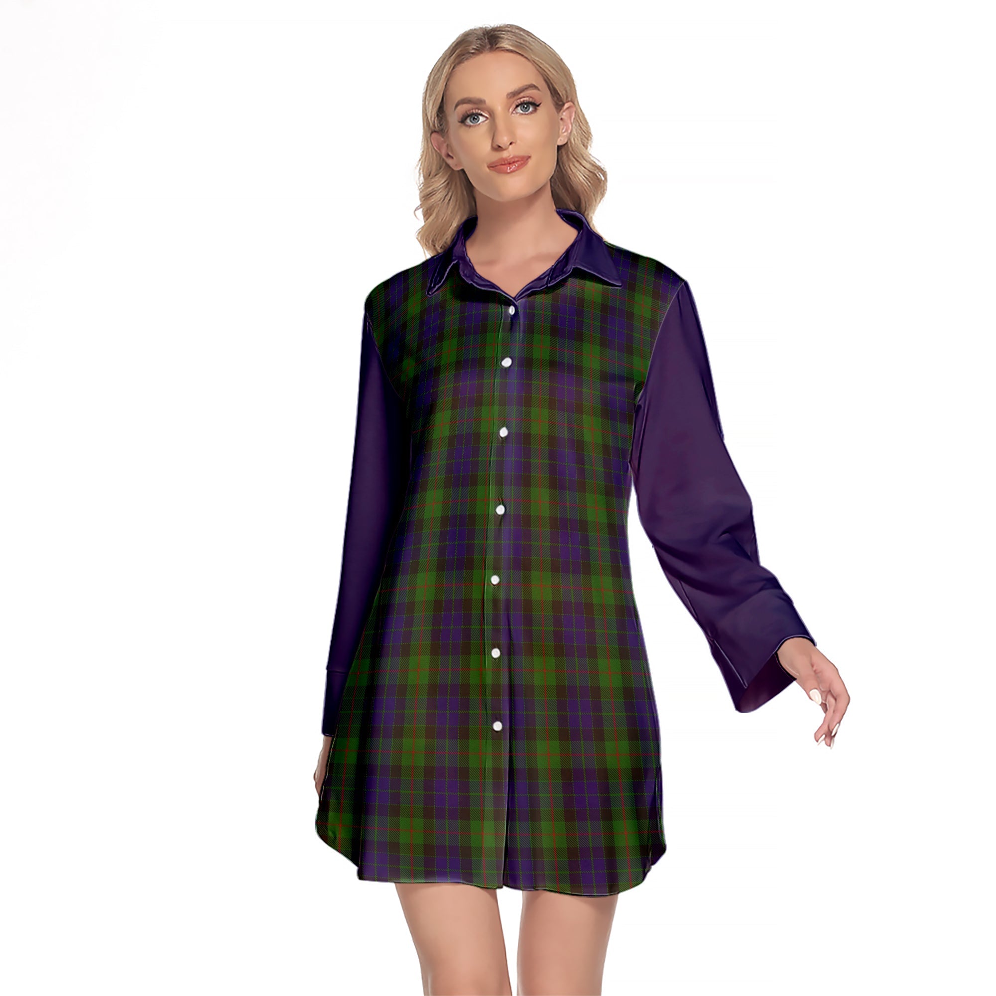 Gunn Tartan Women's Lapel Shirt Dress With Long Sleeve