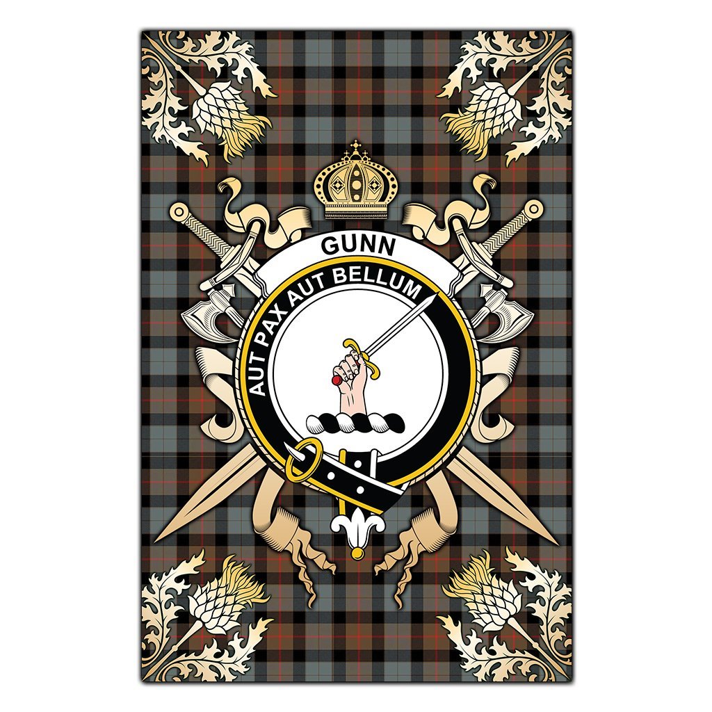 Gunn Weathered Tartan Crest Black Garden Flag - Gold Thistle Style