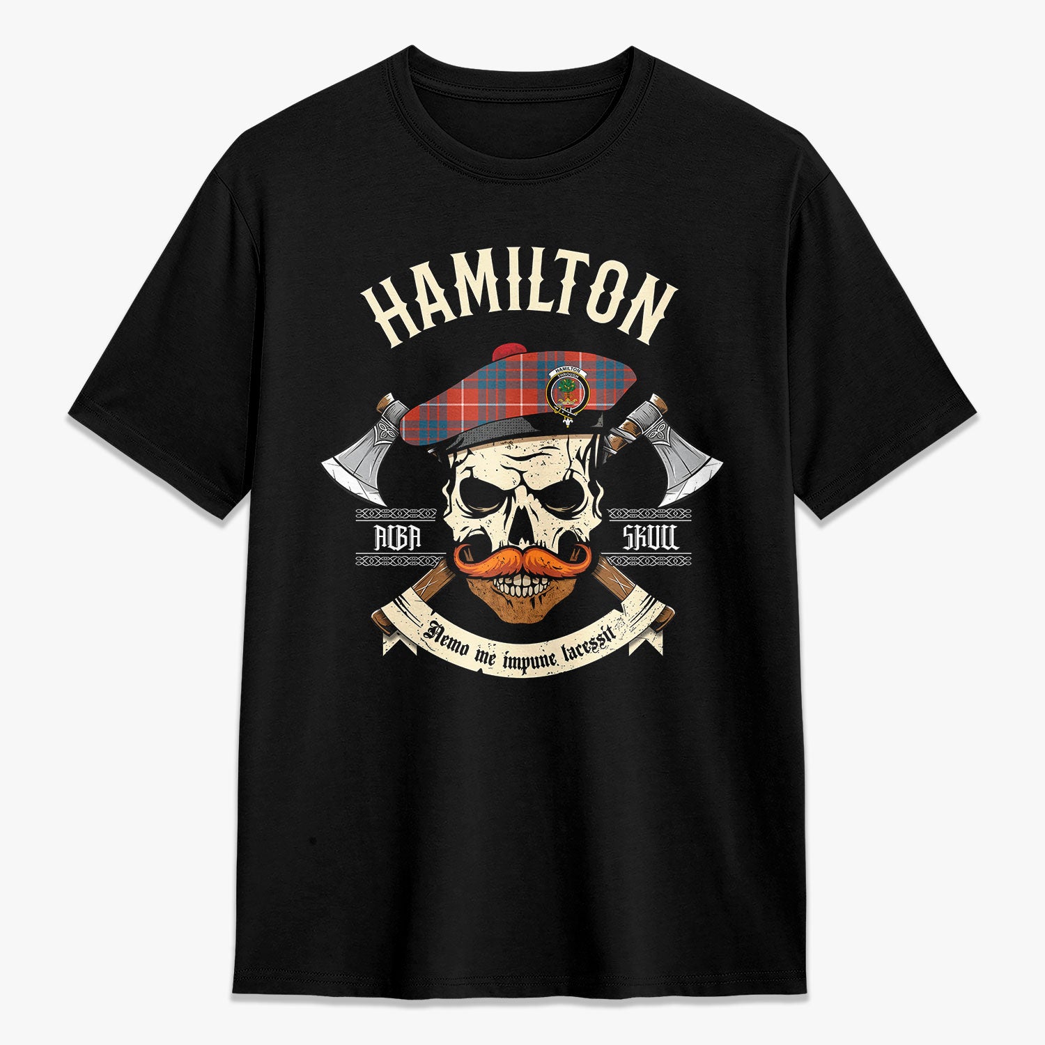 Hamilton Ancient Tartan Crest 2D T-shirt - Alba Skull Style,