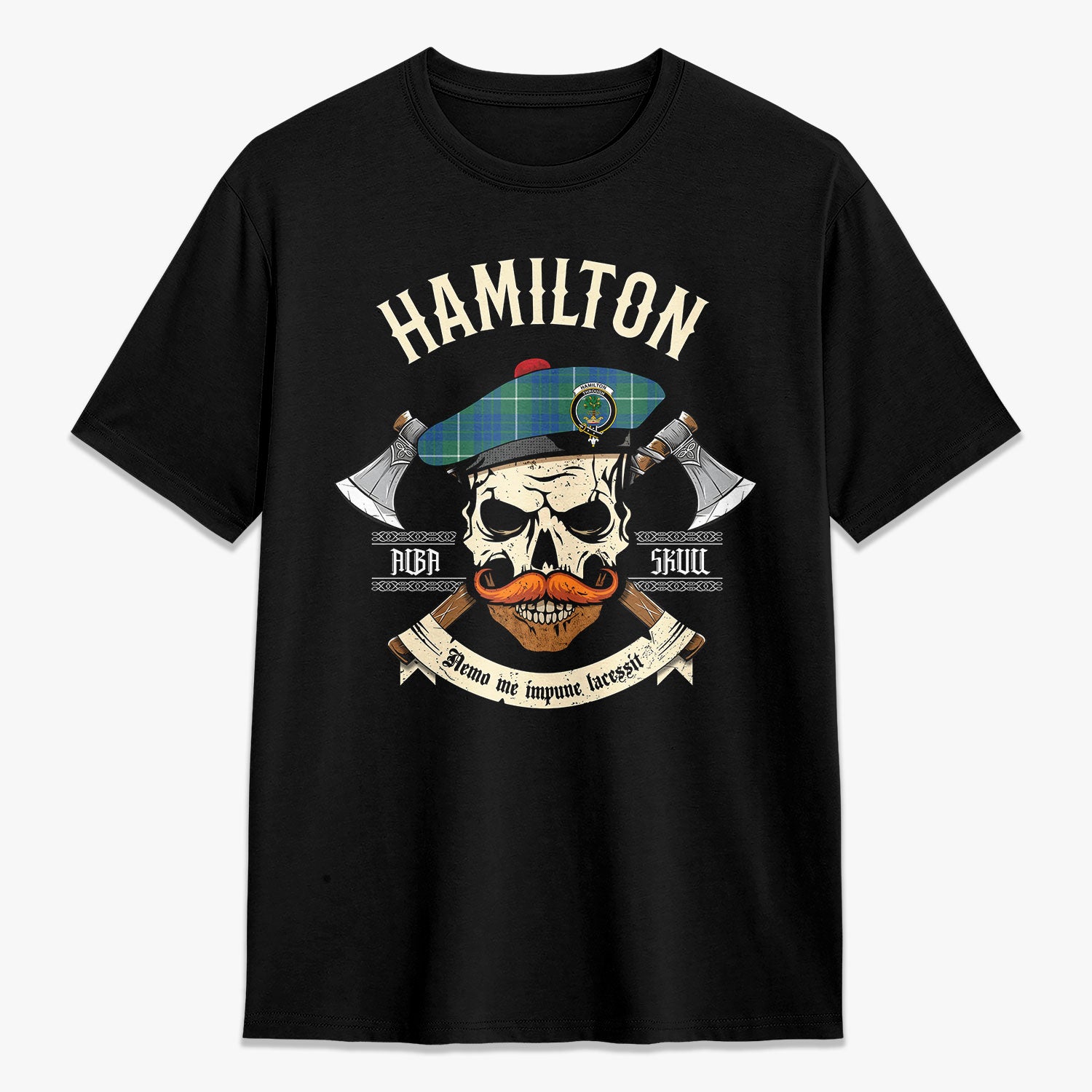 Hamilton Hunting Ancient Tartan Crest 2D T-shirt - Alba Skull Style,