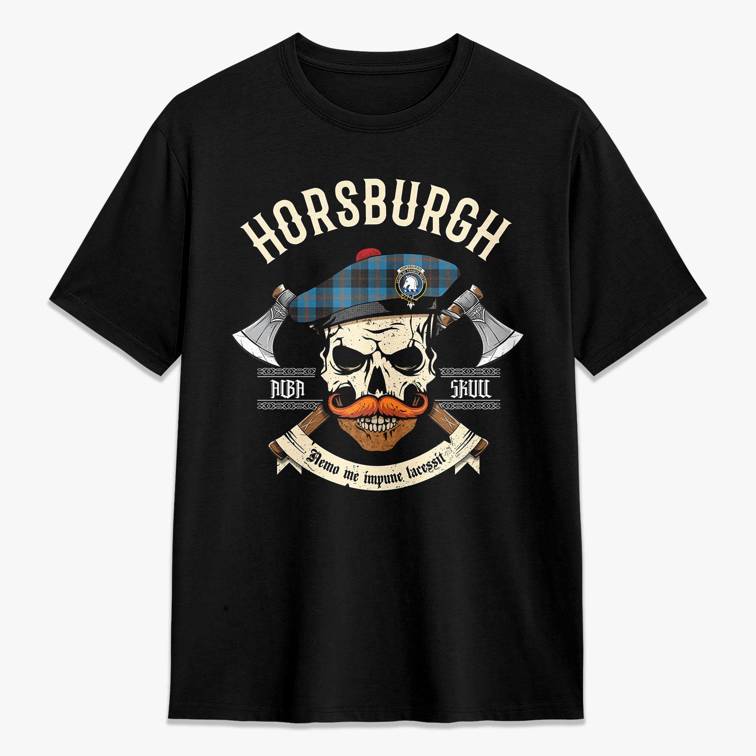 Horsburgh Tartan Crest 2D T-shirt - Alba Skull Style,