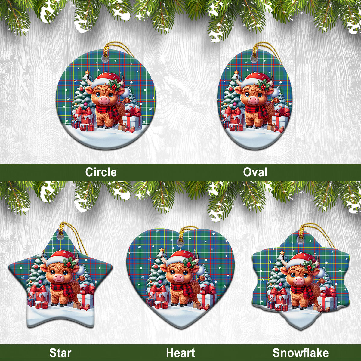 Inglis Ancient Tartan Christmas Ceramic Ornament - Highland Cow Winter Style