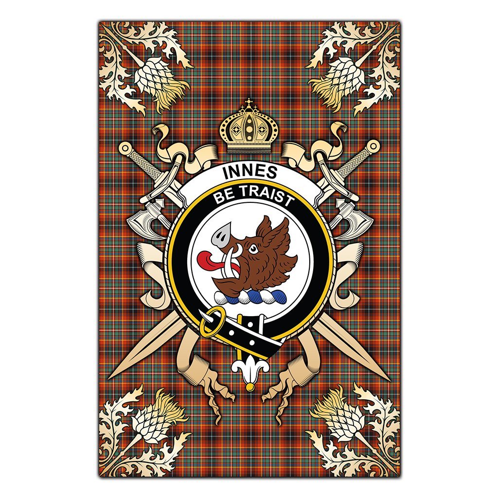 Innes Ancient Tartan Crest Black Garden Flag - Gold Thistle Style