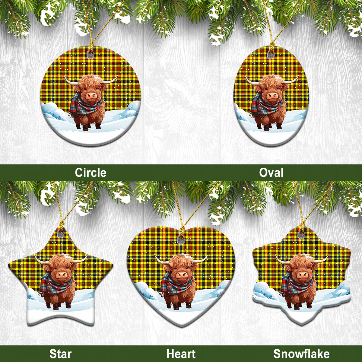 Jardine Tartan Christmas Ceramic Ornament - Highland Cows Snow Style