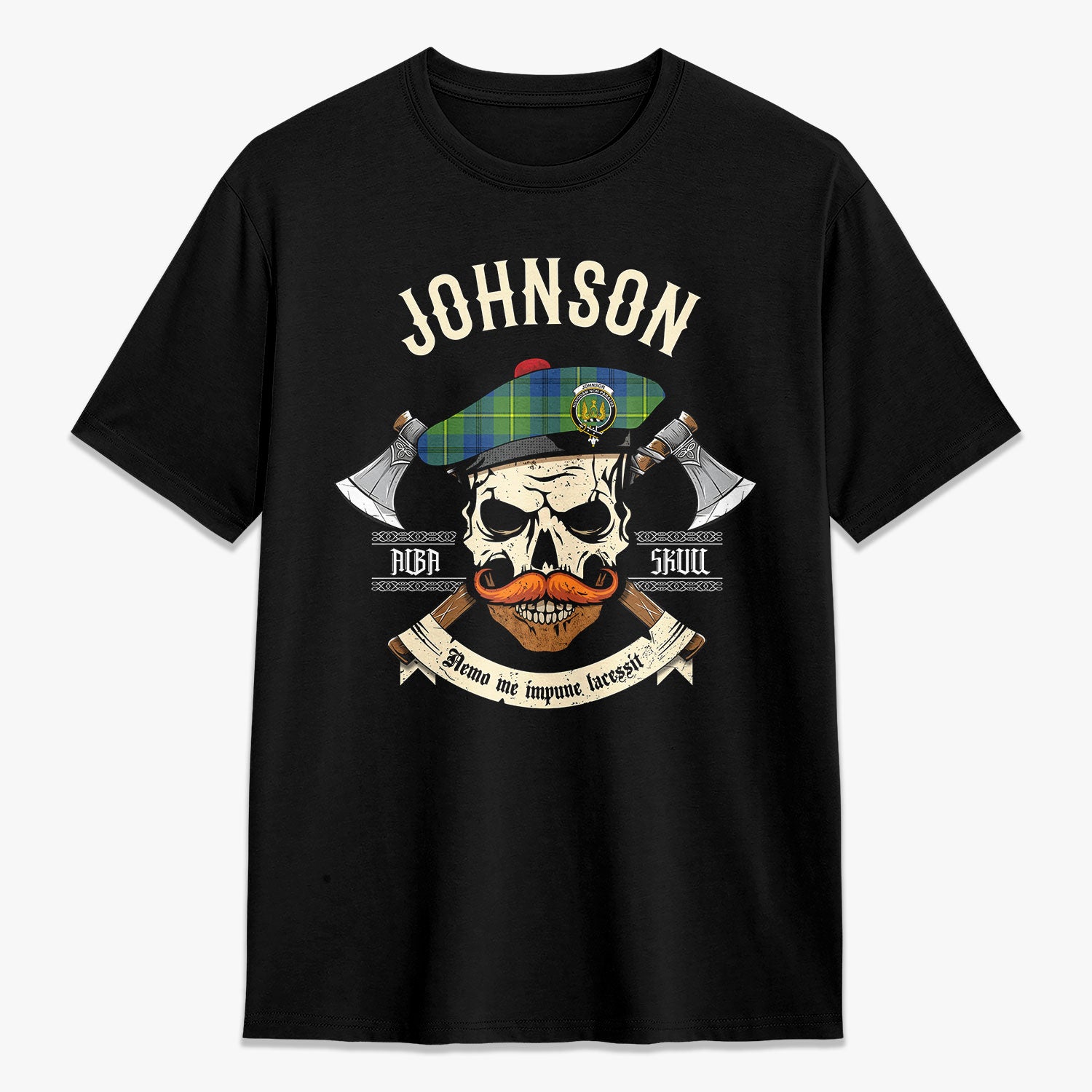 Johnson Ancient Tartan Crest 2D T-shirt - Alba Skull Style,