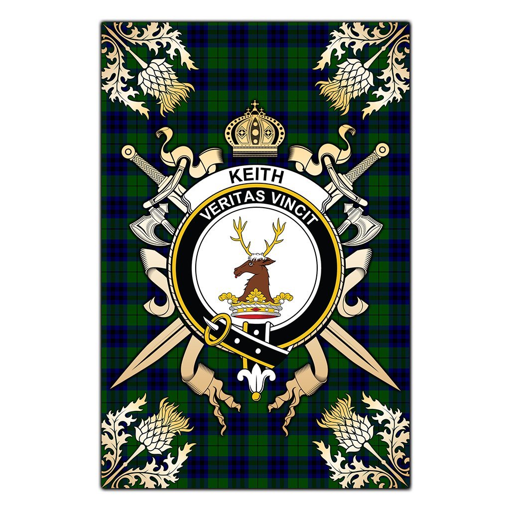 Keith Modern Tartan Crest Black Garden Flag - Gold Thistle Style