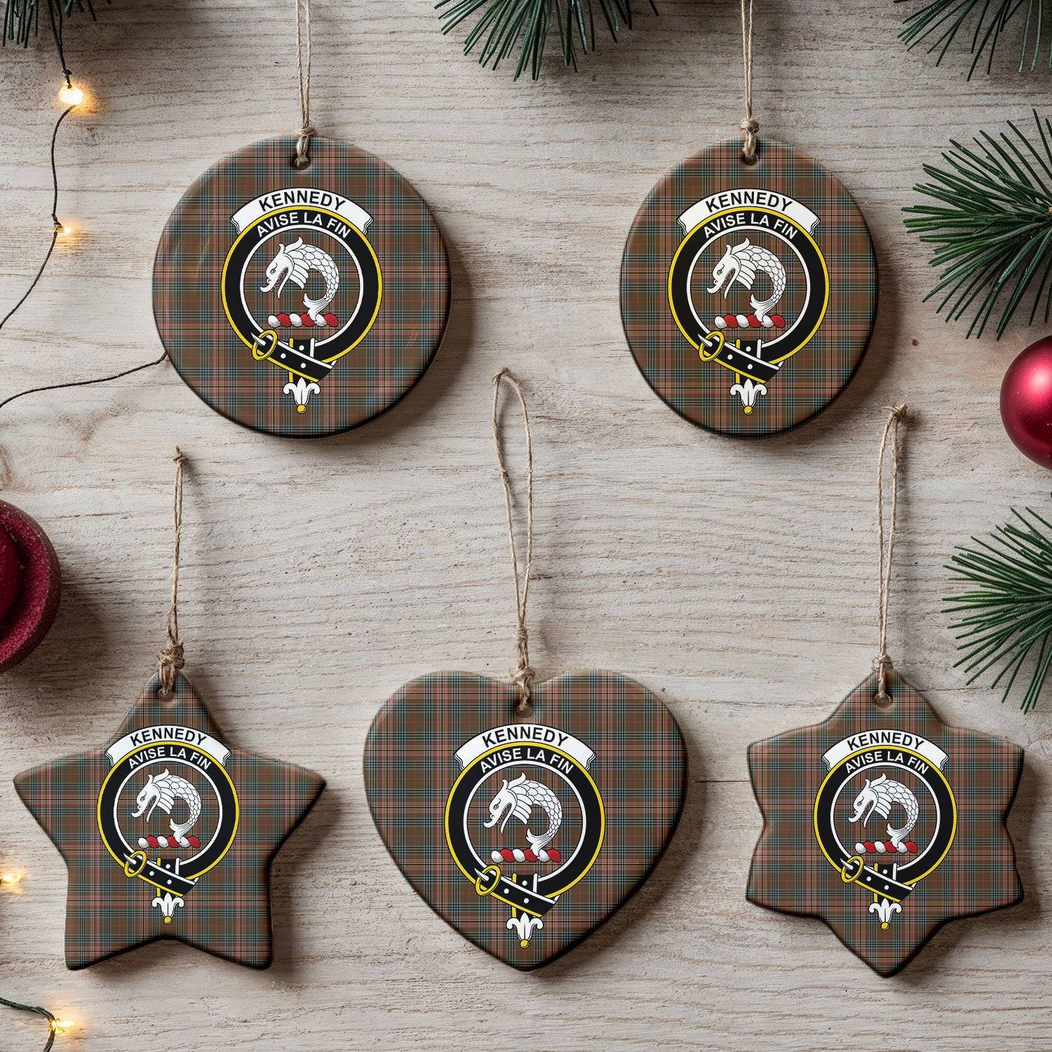 Kennedy Weathered Tartan Crest Christmas Ceramic Ornament