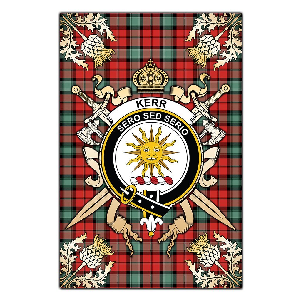Kerr Ancient Tartan Crest Black Garden Flag - Gold Thistle Style