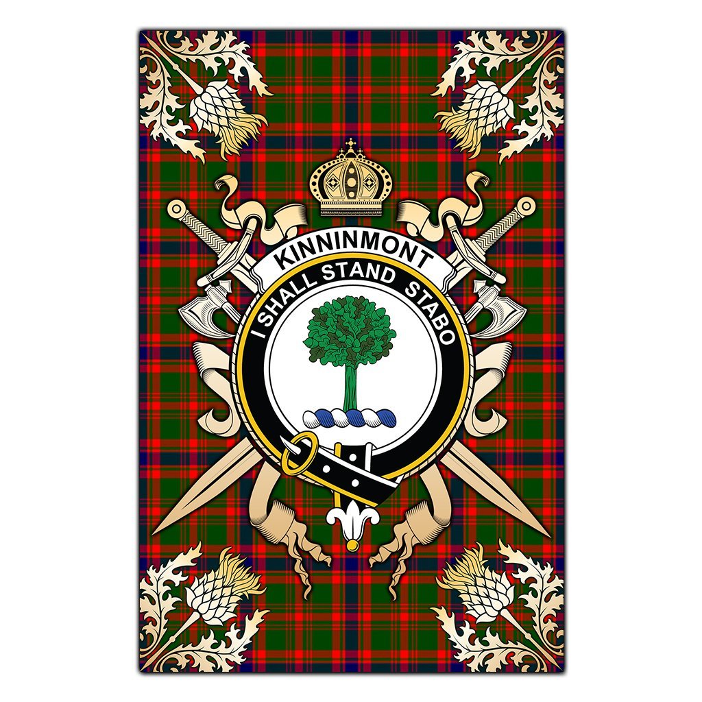 Kinninmont Tartan Crest Black Garden Flag - Gold Thistle Style