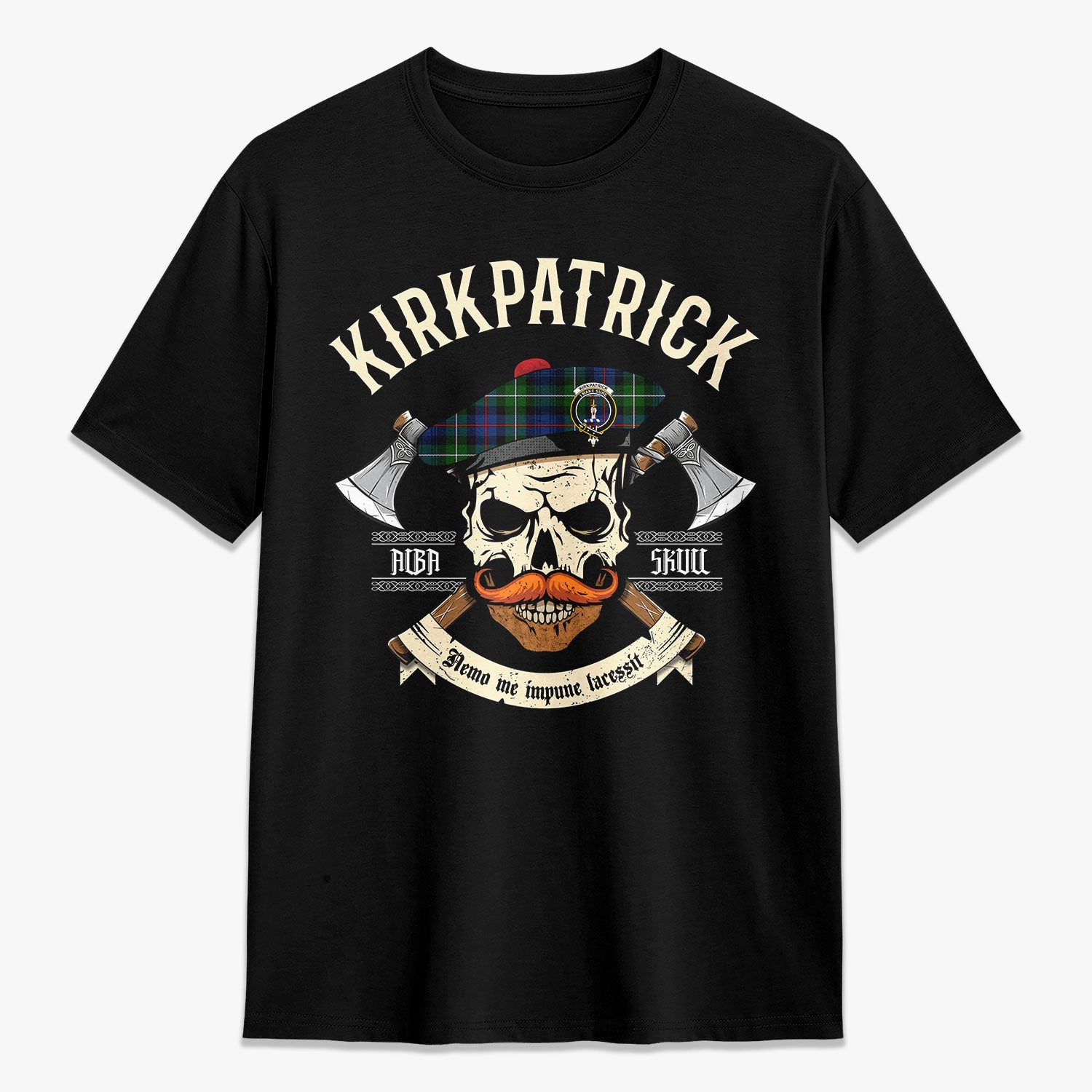 Kirkpatrick Tartan Crest 2D T-shirt - Alba Skull Style,