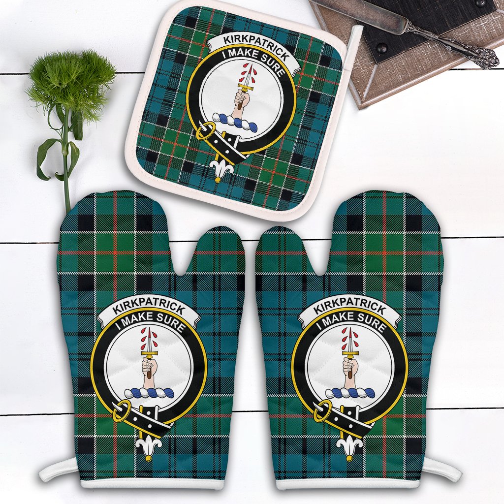 Kirkpatrick Tartan Crest Oven Mitt And Pot Holder (2 Oven Mitts + 1 Pot Holder)