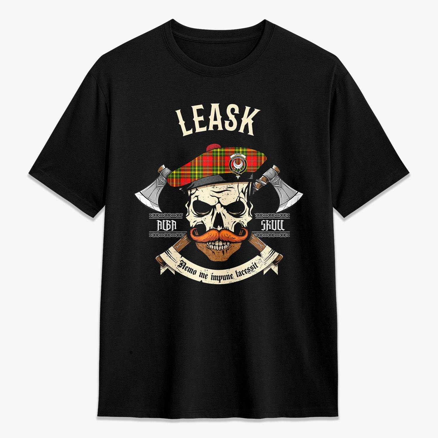 Leask Tartan Crest 2D T-shirt - Alba Skull Style,