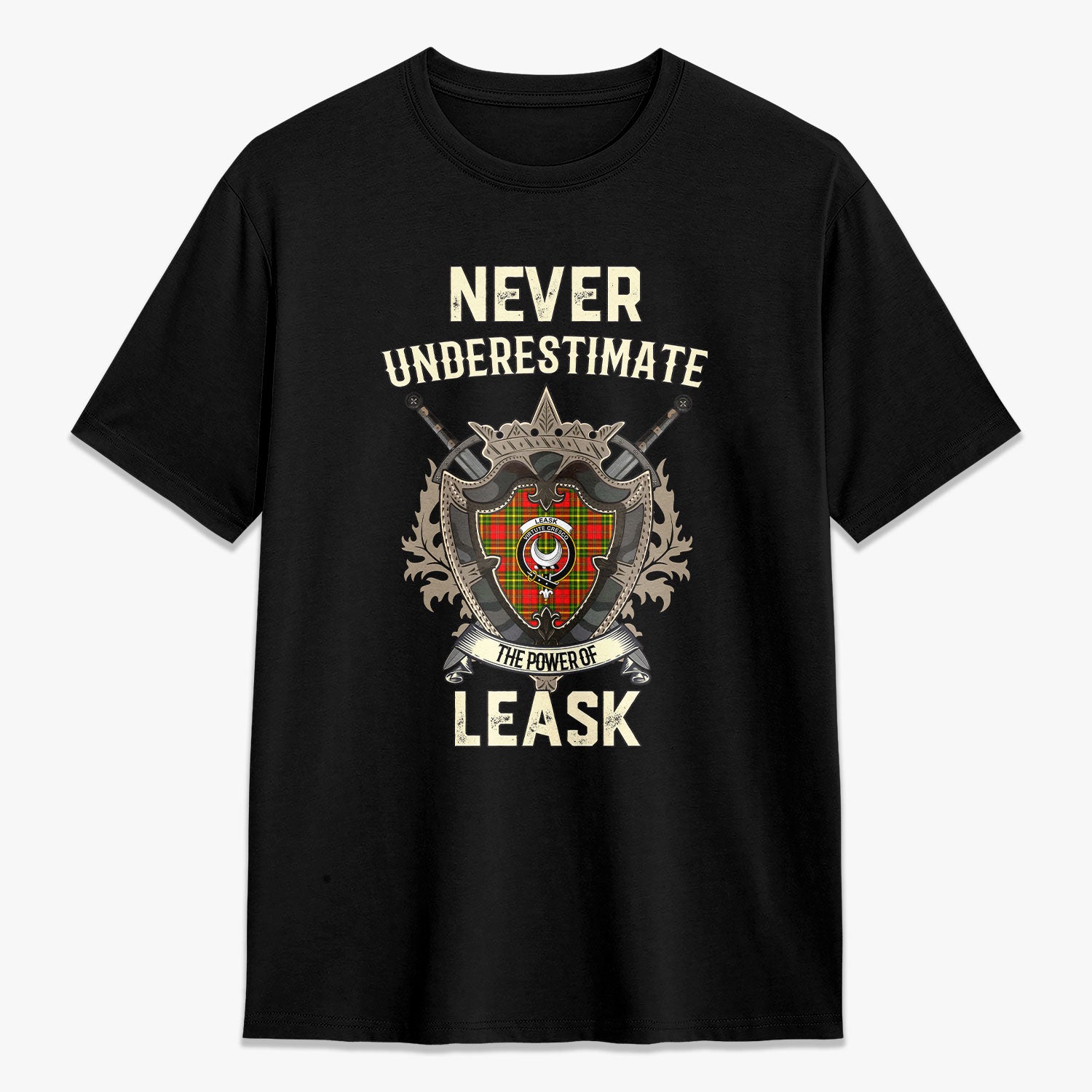 Leask Tartan Crest 2D T-shirt - Never Underestimate Style
