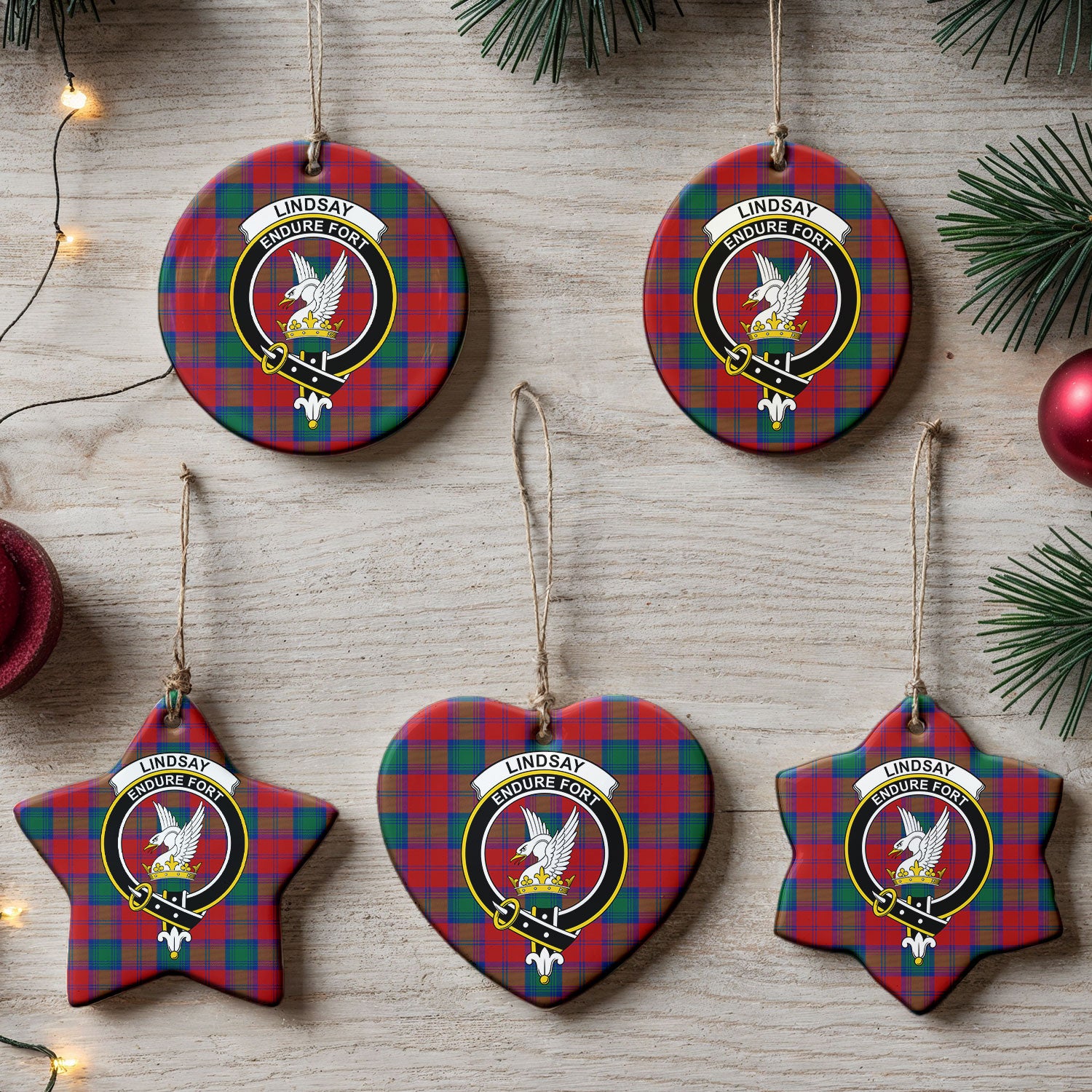 Lindsay Modern Tartan Crest Christmas Ceramic Ornament