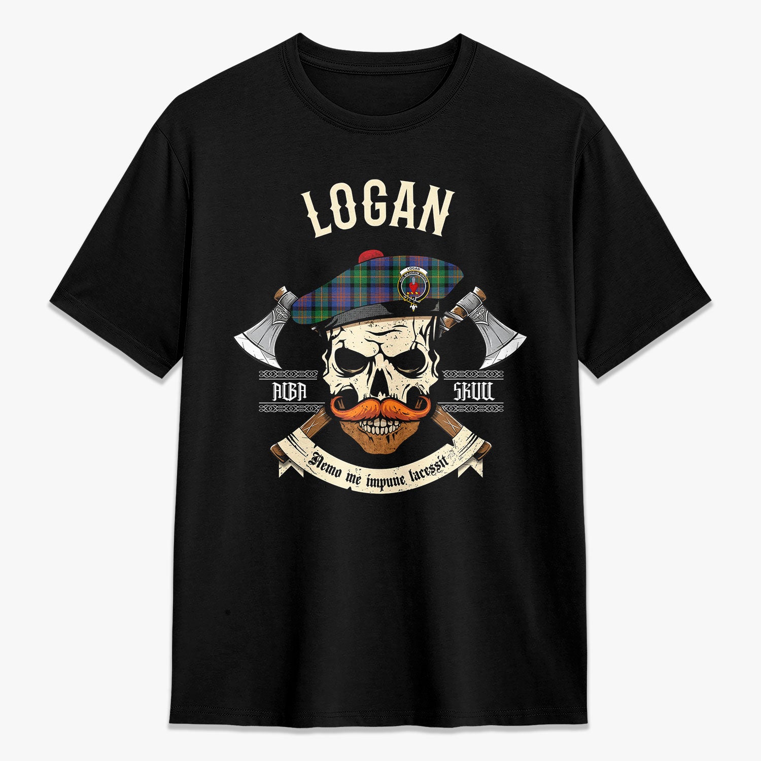 Logan Ancient Tartan Crest 2D T-shirt - Alba Skull Style,