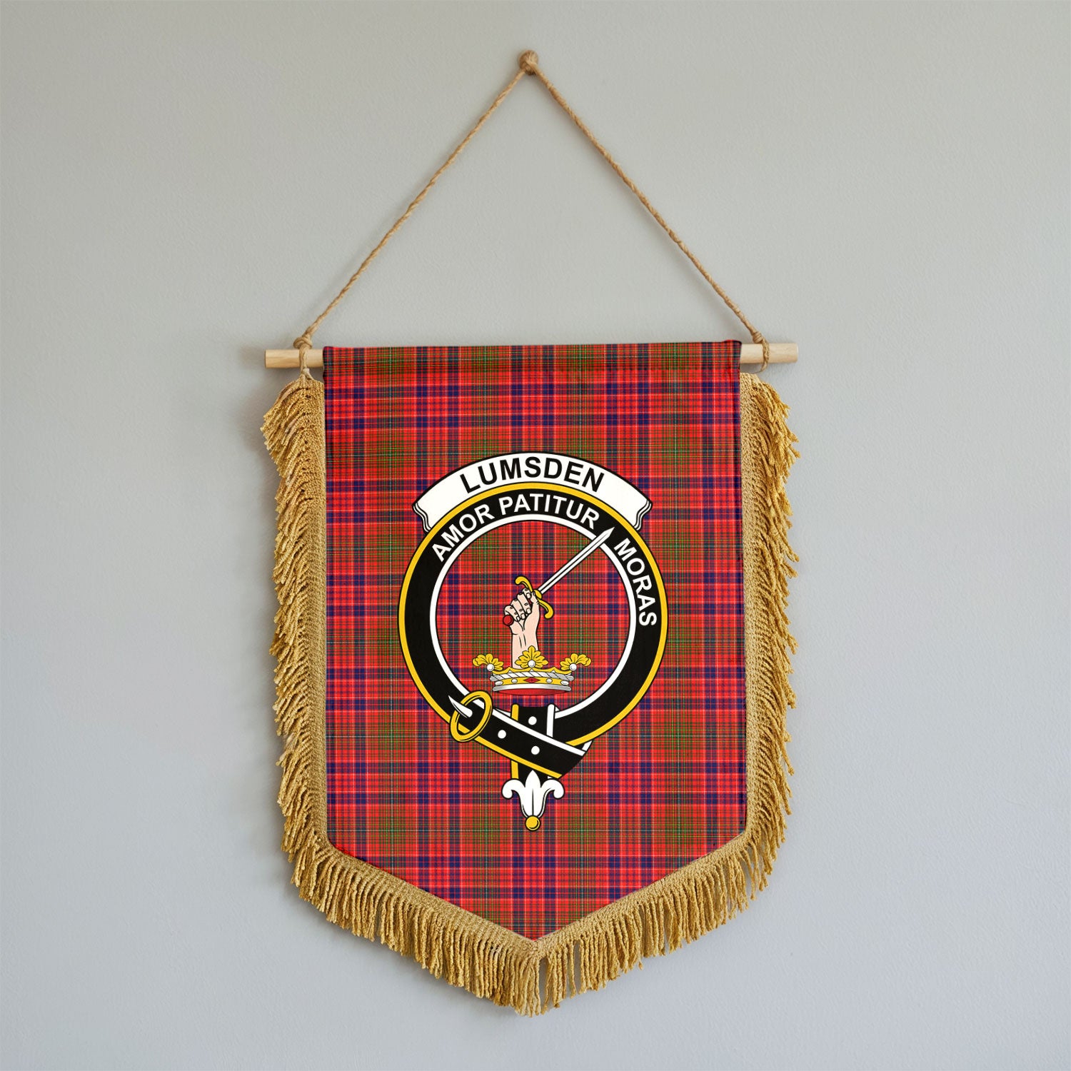 Lumsden Modern Tartan Crest Wall Hanging Banner - Wood Pole