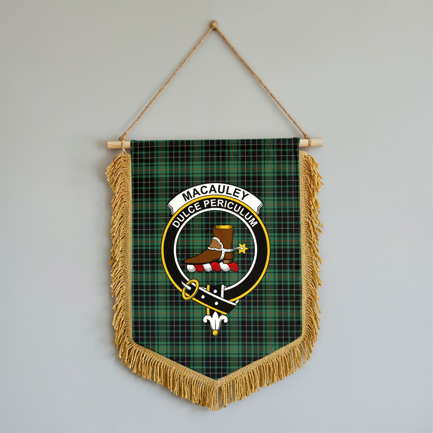 MacAuley Hunting Ancient Tartan Crest Wall Hanging Banner - Wood Pole