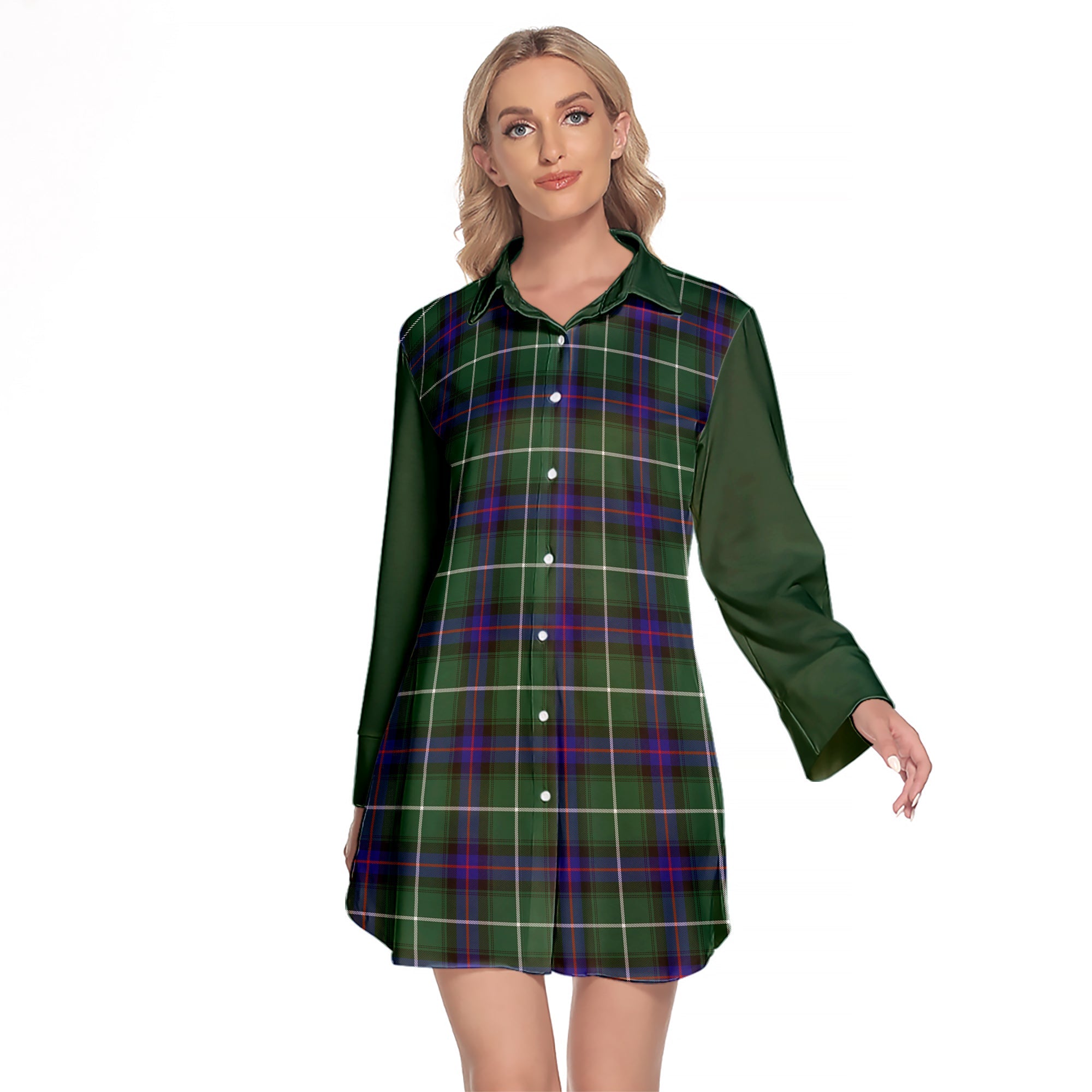 MacDonald Of The Isles Hunting Modern Tartan Women's Lapel Shirt Dress With Long Sleeve