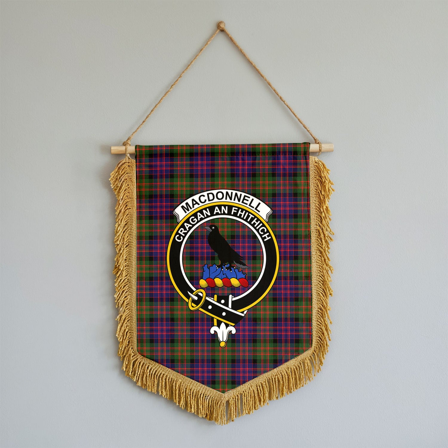 MacDonnell of Glengarry Modern Tartan Crest Wall Hanging Banner - Wood Pole