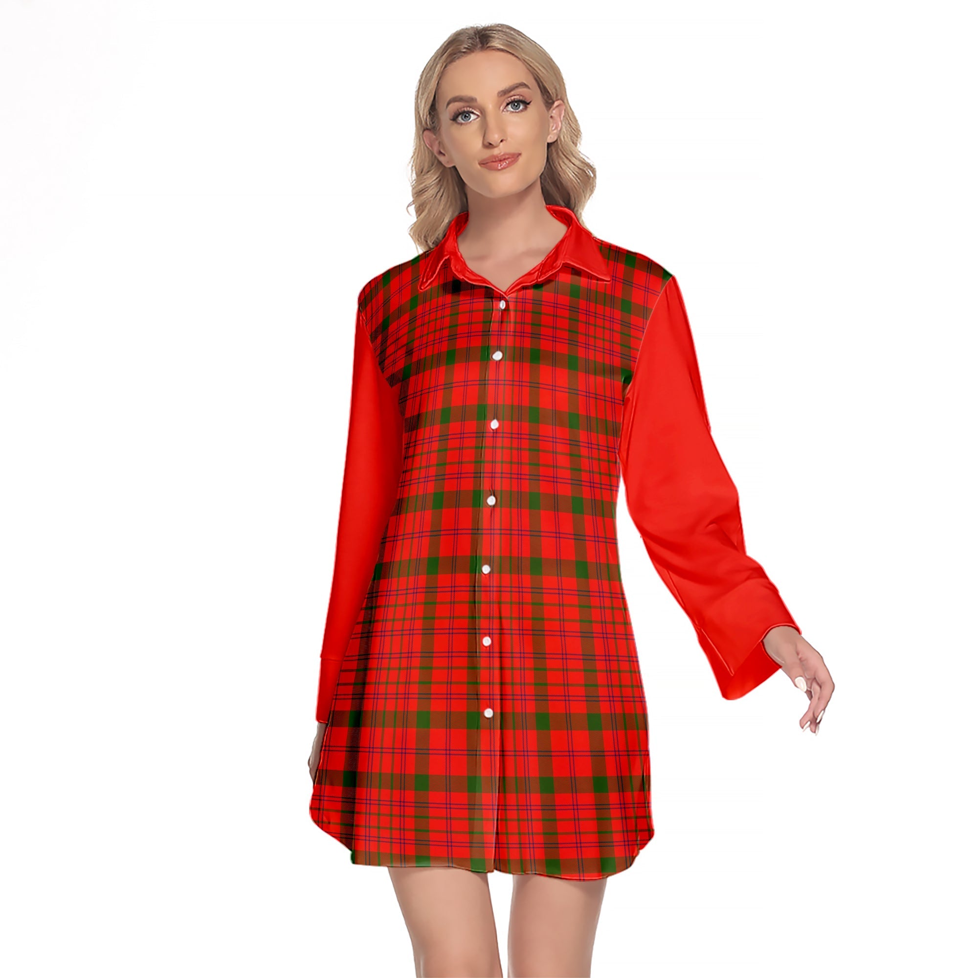 MacDonnell Of Keppoch Modern Tartan Women's Lapel Shirt Dress With Long Sleeve