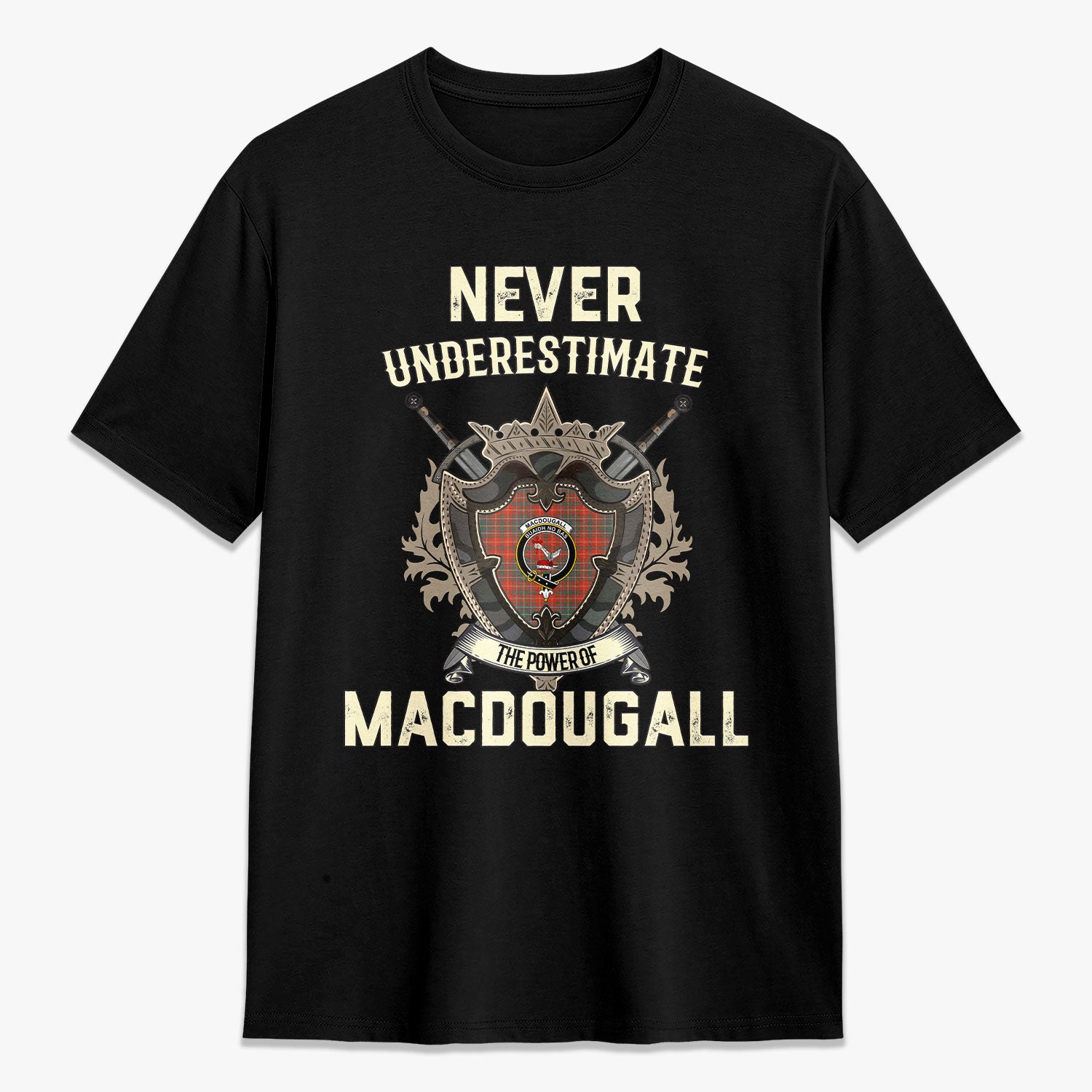 MacDougall Ancient Tartan Crest 2D T-shirt - Never Underestimate Style