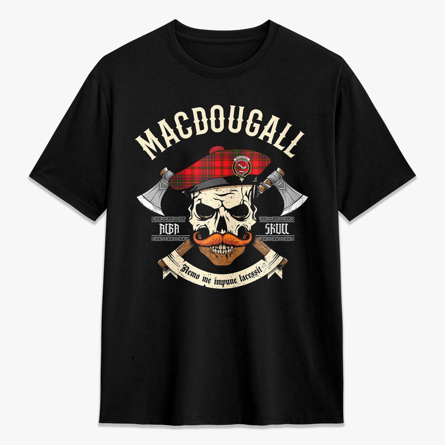 MacDougall Modern Tartan Crest 2D T-shirt - Alba Skull Style,