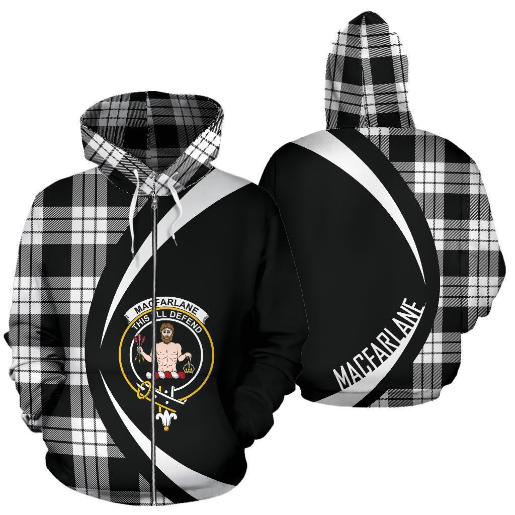 MacFarlane Black _ White Crest Tartan Zipper Hoodie - Circle Style