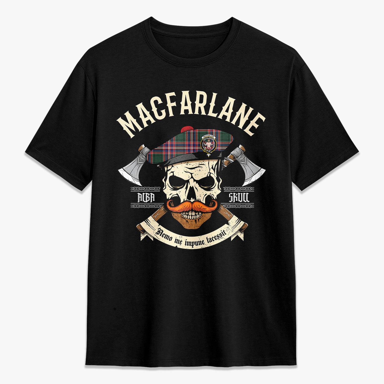 MacFarlane Hunting Modern Tartan Crest 2D T-shirt - Alba Skull Style,
