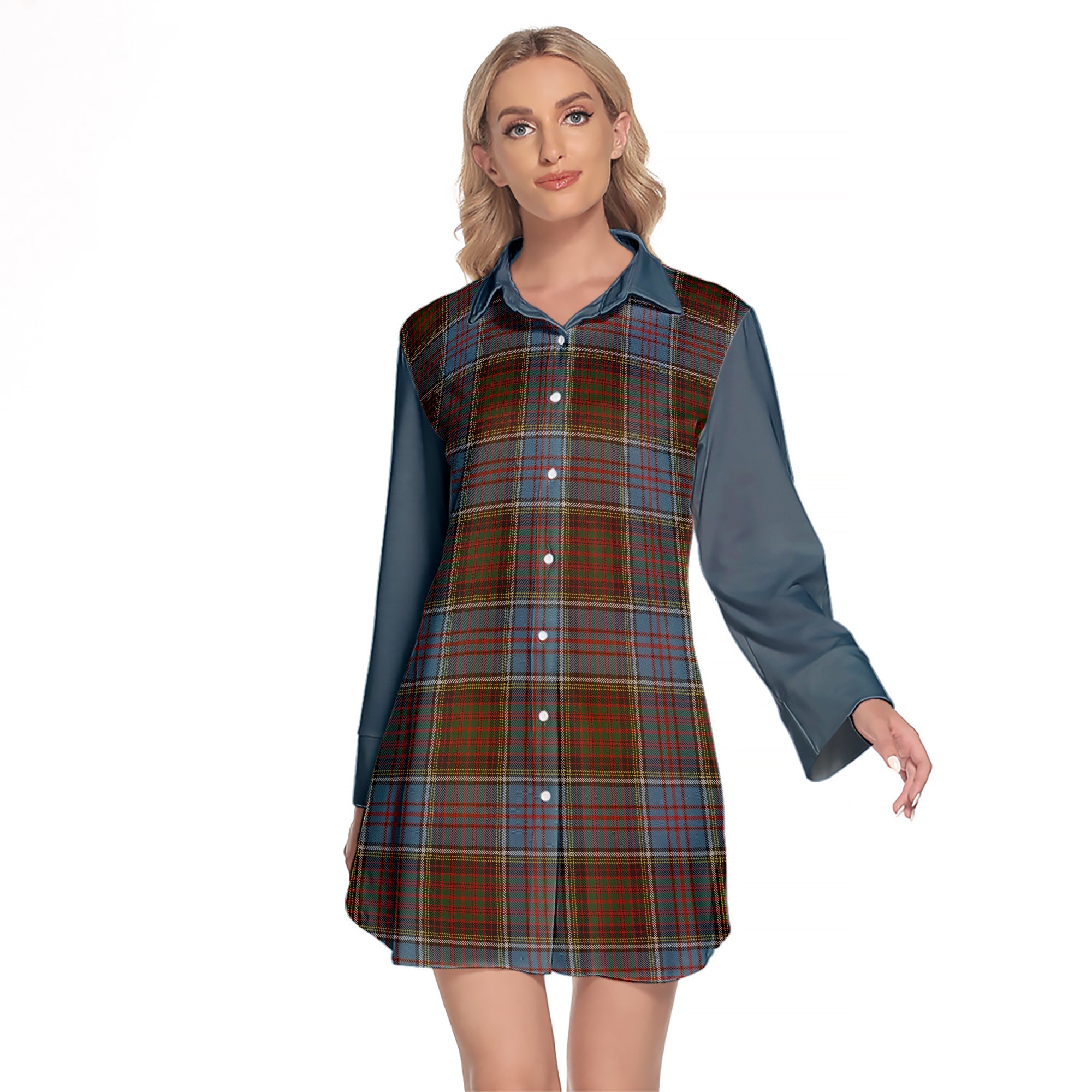MacGregor Hastie Tartan Women's Lapel Shirt Dress With Long Sleeve