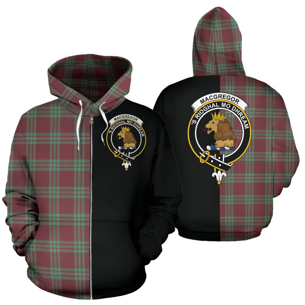 MacGregor Hunting Ancient Tartan Crest Zipper Hoodie - Half Of Me Style