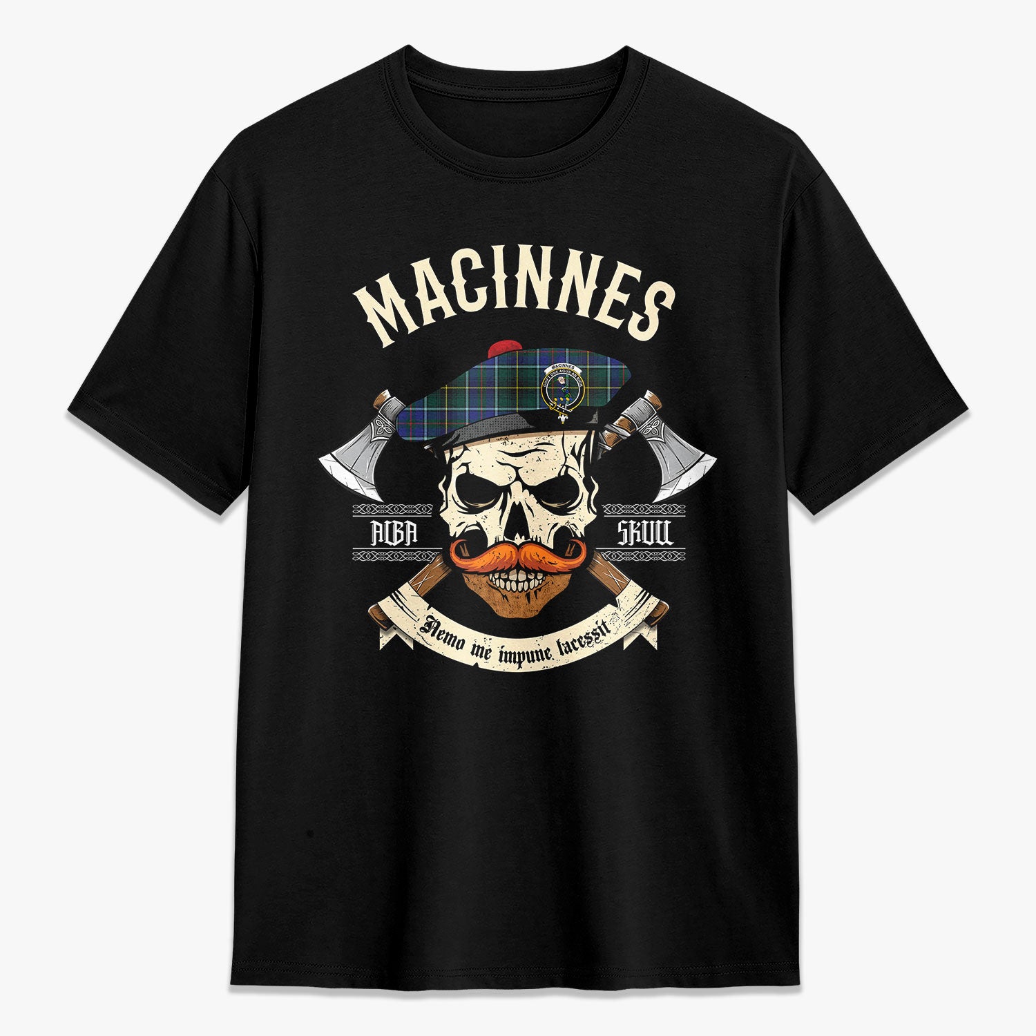 MacInnes Modern Tartan Crest 2D T-shirt - Alba Skull Style,