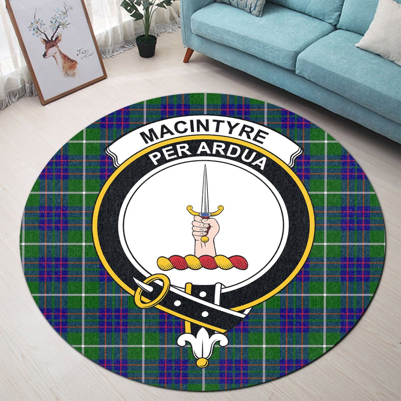 MacIntyre Hunting Modern Tartan Crest Round Rug