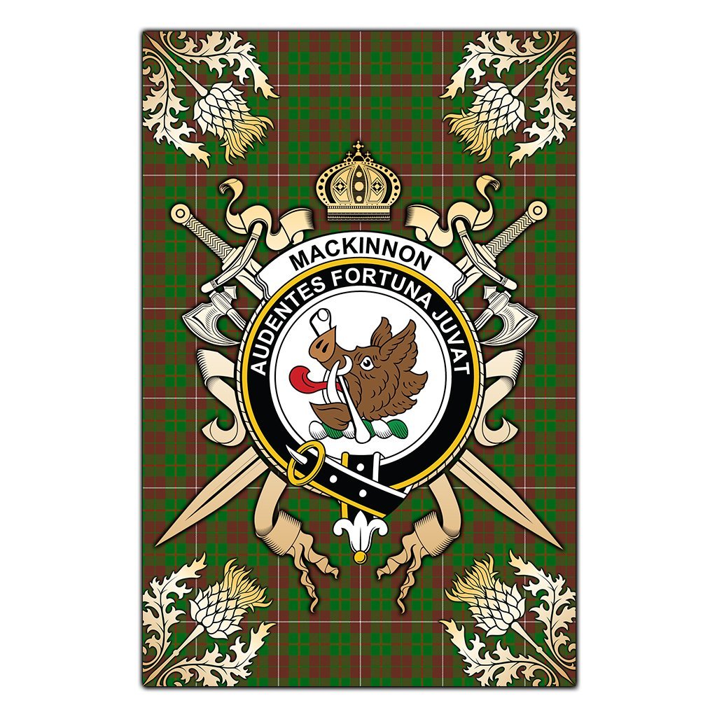 MacKinnon Hunting Modern Tartan Crest Black Garden Flag - Gold Thistle Style