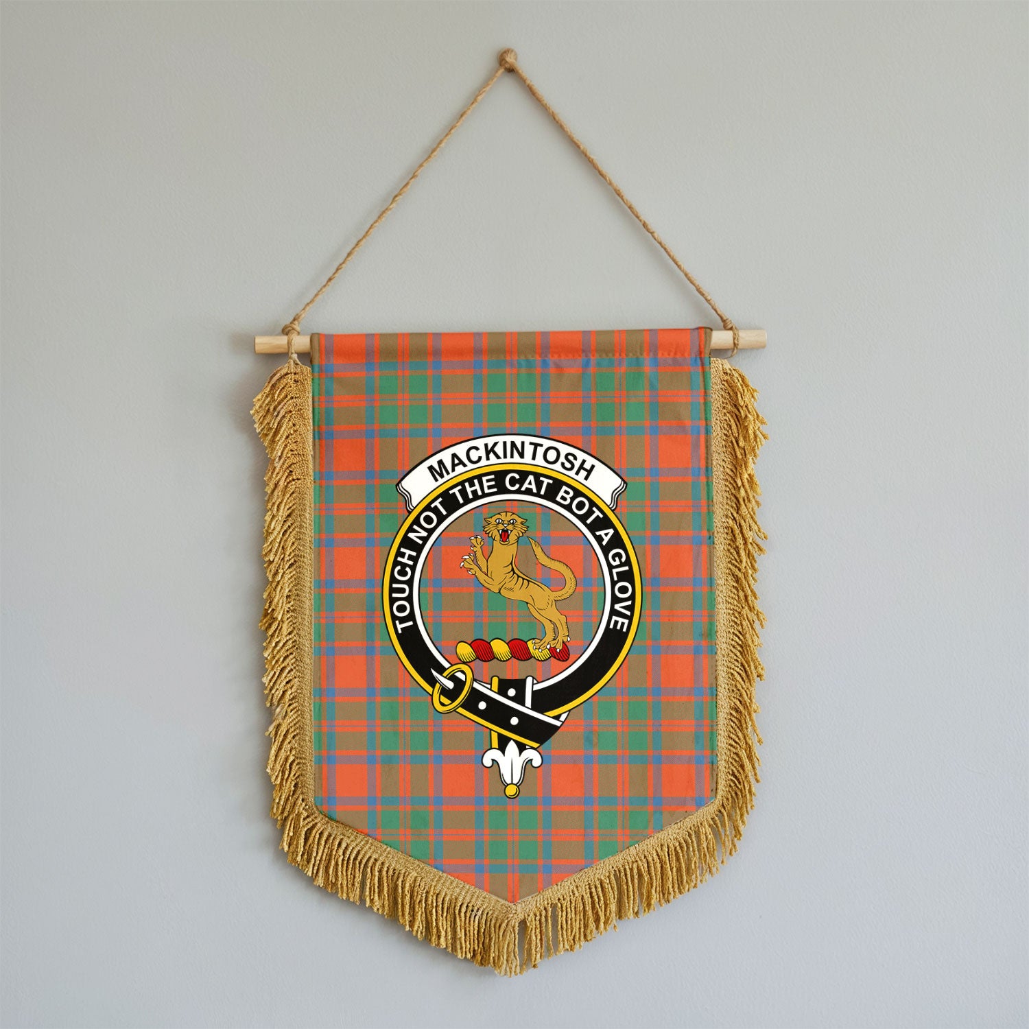 MacKintosh Ancient Tartan Crest Wall Hanging Banner - Wood Pole