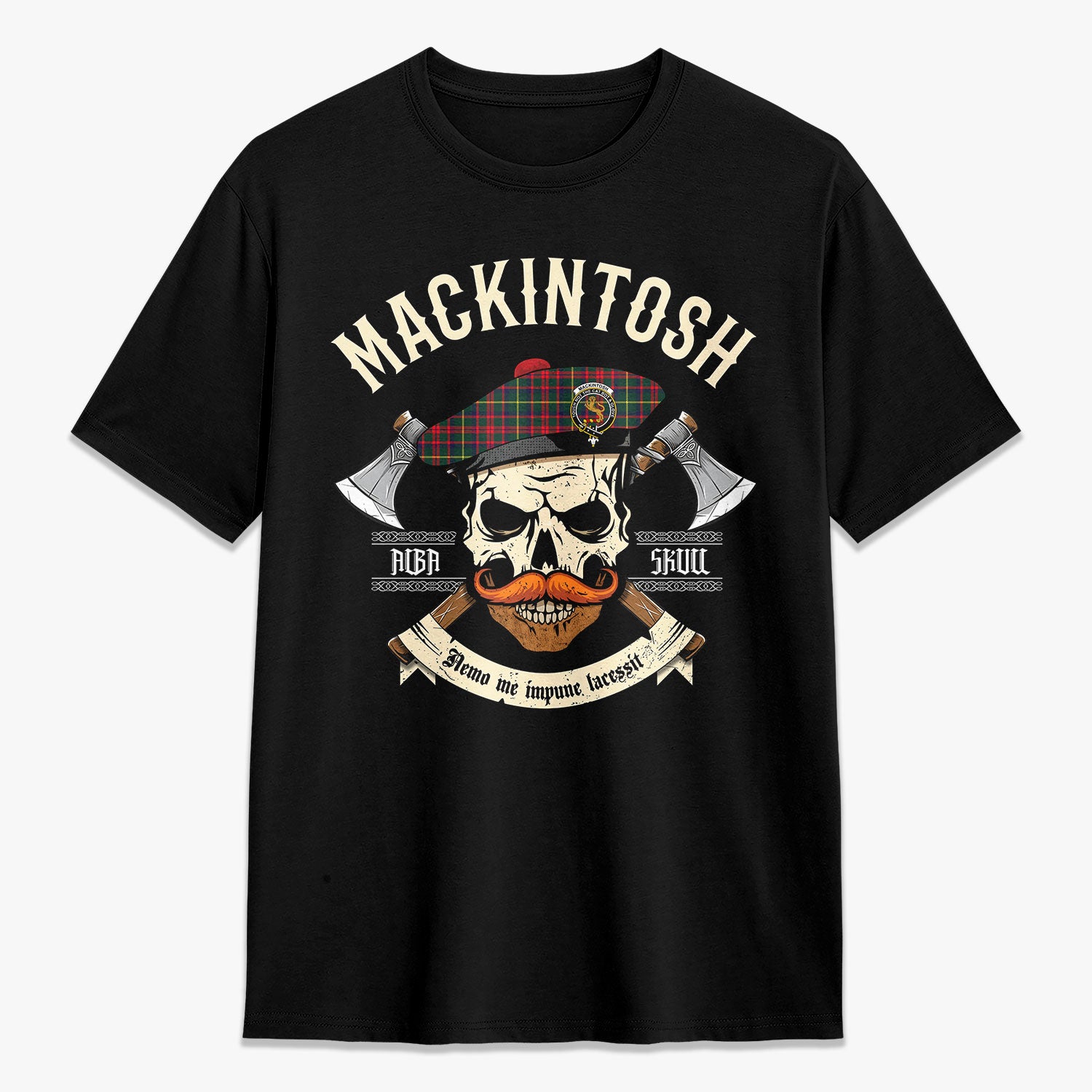 MacKintosh Hunting Modern Tartan Crest 2D T-shirt - Alba Skull Style,
